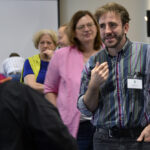 Die Begrüßungsrunde, eingeläutet durch Barbara Thieme (Dorling Kindersley) und Bernd Herzog (frechverlag) vom Vorstand der avj, machte deutlich: Man freute sich auf neue Ideen und den Austausch miteinander. Die vergangenen Jahre waren für alle anstrengend, Kund:innen seien fordernder, anstrengender und unentschiedener als früher geworden – das von avj-Geschäftsleiterin Laura Simanjuntak organisierte Praxisseminar erschien mancher Teilnehmerin wie Kurzurlaub und Klassentreffen zugleich. Eine zentrale Frage formulierte Gabi van Wahden (Buchhandlung van Wahden, Wermelskirchen): „Wo setze ich meine Energie am sinnvollsten ein?“
