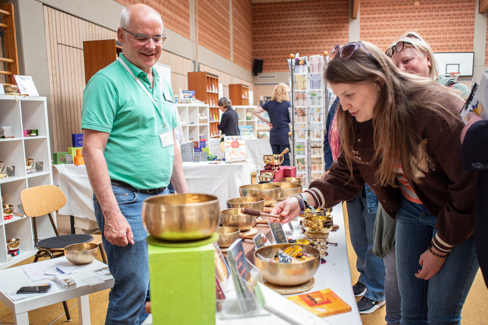 Am Messesonntag gab es am Vormittag noch einmal die Gelegenheit, nach dem Gottesdiensten die Stände der Aussteller zu besuchen oder im Fair-Handel zu stöbern. Einige Besucherinnen und Besucher zog es noch in die Messehallen und zur Kunstausstellung von P. Meinrad Dufner. Die Verlage nutzten den Vormittag aber auch zum gegenseitigen Standbesuch und Austausch – diese Vernetzung und das Miteinander war über die ganzen Messetage zu spüren.