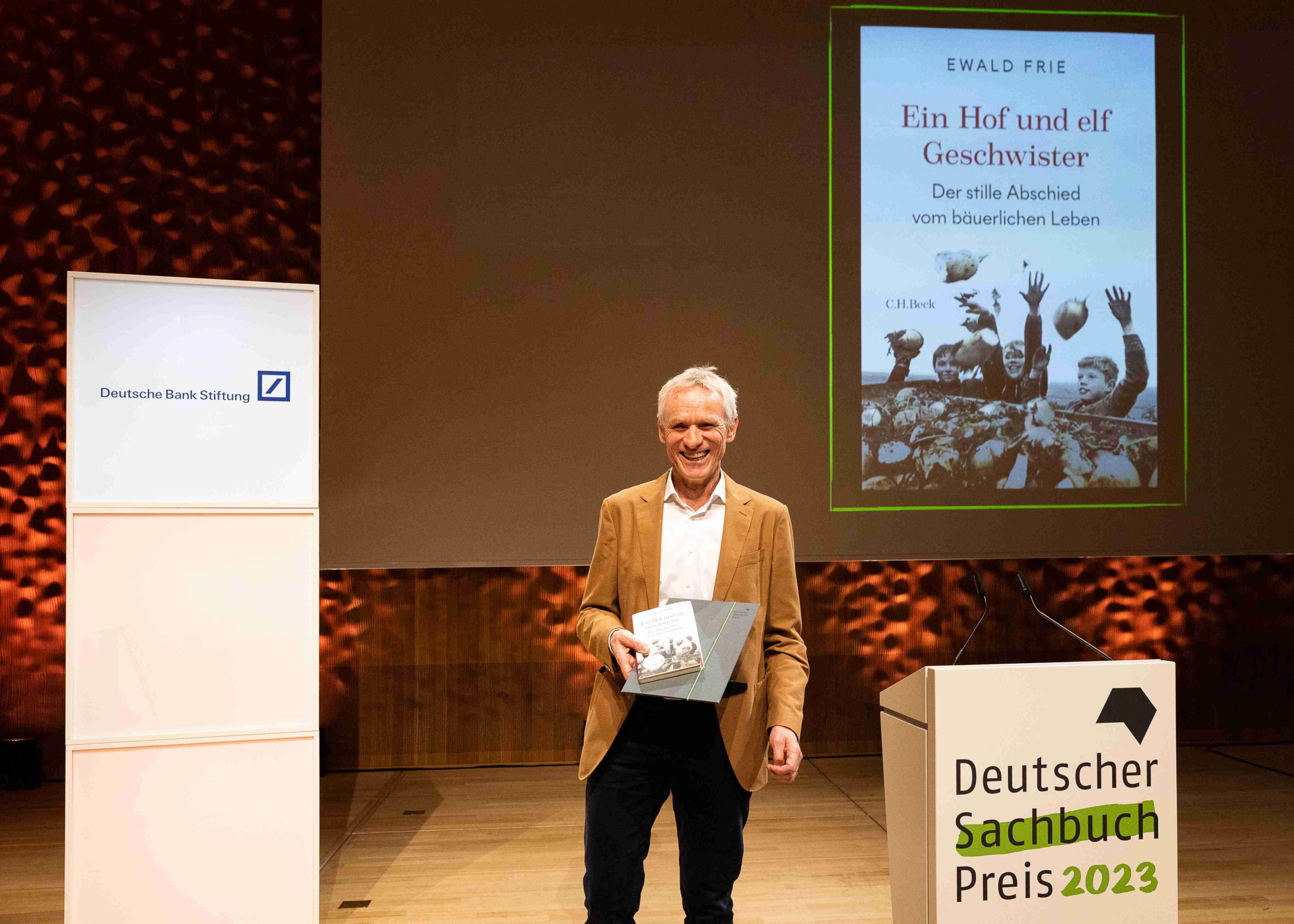 Heute Abend wurde in der Elbphilharmonie in Hamburg der Deutsche Sachbuchpreis 2023 verliehen. Die mit 25.000 Euro dotierte Auszeichnung ging an den Historiker Ewald Frie für sein Werk Ein Hof und elf Geschwister. Der stille Abschied vom bäuerlichen Leben in Deutschland (Verlag C.H.Beck).