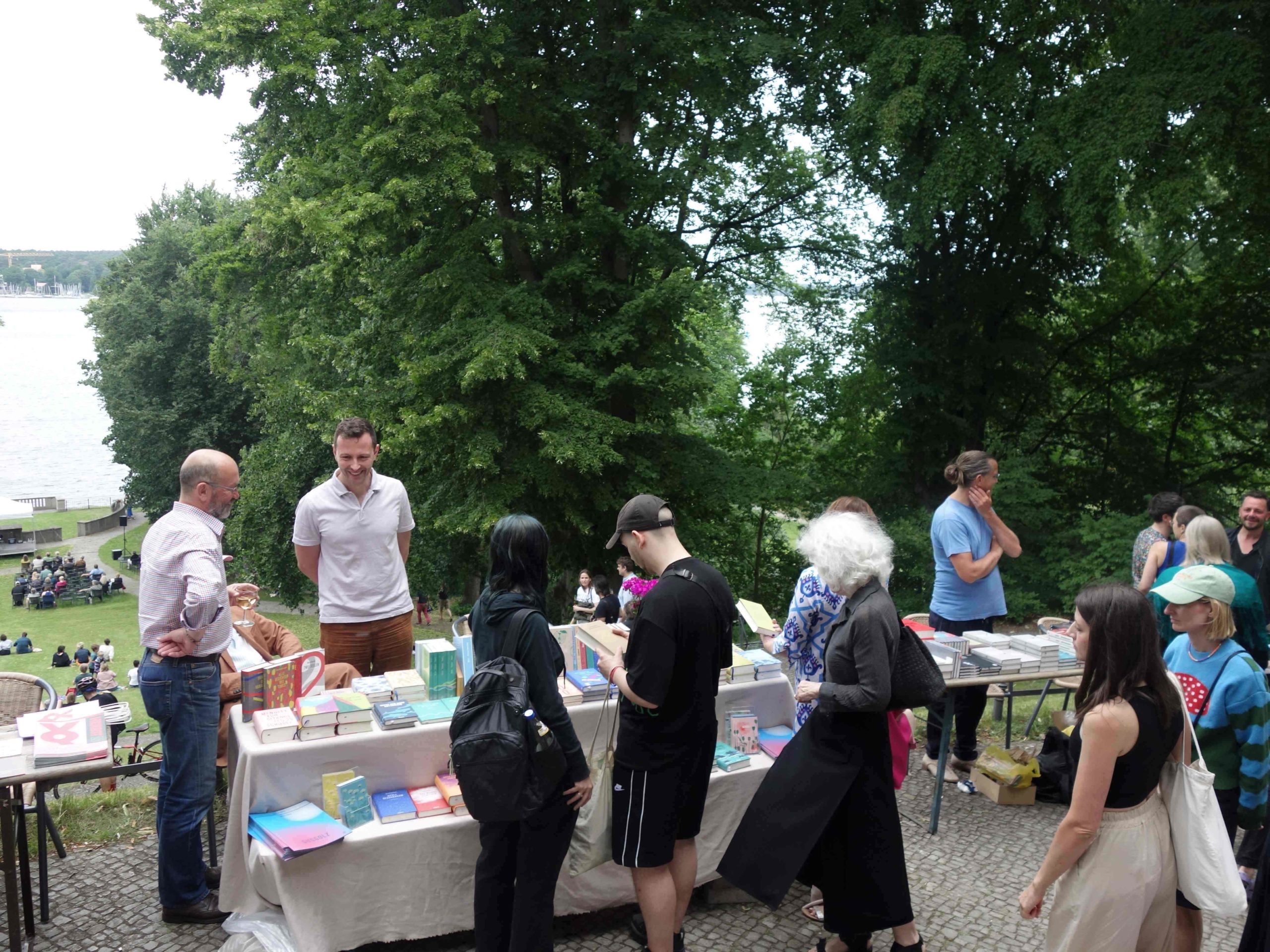 Wie schon im vergangenen Jahr hätte man sich gestern schöneres Wetter gewünscht. Doch trotz dunkler Wolken kamen schon am frühen Nachmittag viele Literaturfreunde zur 18. Ausgabe der Verkaufsmesse „Kleine Verlage am Großen Wannsee“ ins Literarische Colloquiums Berlin (LCB). Knapp vierzig unabhängige Verlage – von avant bis Wunderhorn – hatten wie berichtet die Einladung angenommen und präsentierten eine Auswahl ihres Programms in der Villa und im Garten. Einige wie Berenberg, ebersbach & simon, Kookbooks, Secession und Verbrecher Verlag gehören längst zu den Stammgästen, andere wie Kopf & Kragen und Weidle waren in diesem Jahr zum ersten Mal dabei.