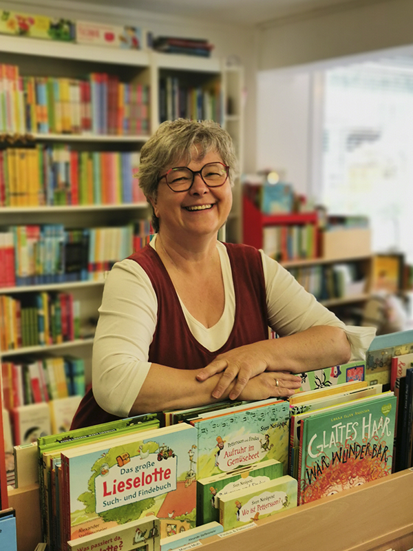 Wer an Gabi van Wahden denkt, hat sofort ihr einnehmendes Lachen im Ohr, denn sie lacht viel und gerne. Das werden auch ihre Mitarbeiter:innen und Kund:innen in der Buchhandlung in Wermelskirchen bekräftigen können. Gabi sprüht geradezu vor Ideen, insbesondere wenn es darum geht, Kinder und Jugendliche für Bücher zu begeistern. Dabei zeigt sie vollen Einsatz: Sie singt, trägt Einhornklammern im Haar oder einen Pappknochen im Mund: Hauptsache der Funke springt über. Ob klassische Schullesungen oder liebevoll geplante Aktionen: Immer ist sie mit ganzem Herzen dabei.