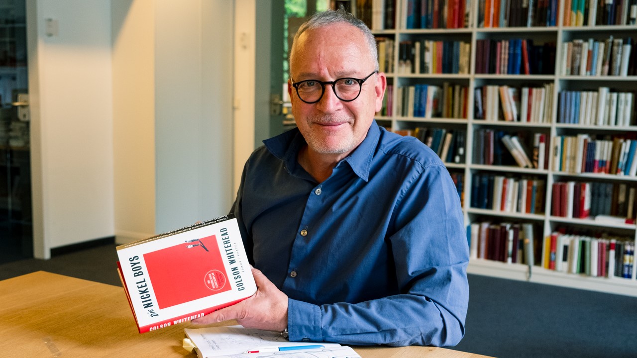 Wenn man bei Google die Berufsbezeichnung ‚Art Director‘ eingibt, scrollt man durch eine seitenlange Auflistung von Qualifikationen, Fähigkeiten und Voraussetzungen für einen Beruf, den man in Verlagen nicht besonders häufig antrifft. Peter-Andreas Hassiepen – verlagsinternes Kürzel H7 -, seit 36 Jahren bei Hanser und viele Jahre davon Art Director, mag diese Bezeichnung ohnehin nicht, was aber nicht heißt, dass er nicht alle Voraussetzungen erfüllt und noch eine ganze Reihe mehr mitbringt. Vielleicht war seine Ausbildung nicht gradlinig, aber wer kann das im Buchhandel schon vorweisen. Bevor er 1987 zu Hanser kam, war er sechs Jahre lang Buchhändler in der schönen, verwinkelten Buchhandlung Dessauer in der Maximilianstraße. Dort hatte er natürlich jeden Tag mit Schutzumschlägen und Werbung zu tun (und musste ein Buch auch mal trotz des Umschlags verkaufen), und wenn eines seiner persönlichen Lieblingsbücher ein Cover hatte, das ihn störte, entwarf er für den privaten Gebrauch schon mal ein eigenes.