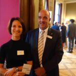 Auch Dieter Cavalleri, Gesandter der Schweizer Botschaft, ließ sich von Tanja Messerli, der Geschäftsführerin SBVV, die aktuelle Buchproduktion seines Landes zeigen. „Noch nie zuvor habe es so viele Anmeldungen gegeben wie in diesem Jahr, sagte er in einer kurzen Ansprache und freute sich über die Anwesenheit der zahlreichen Buchhändler und Buchhändlerinnen „mit viel Herzblut“. Der große Zuspruch sei ein gutes Zeichen für das Interesse an Literatur und am gegenseitigen Austausch. Auch Tanja Messerli dankte den Gästen für die Solidarität, mit der sie dazu beitragen, die aktuellen Herausforderungen zu meistern. Es komme darauf an gegenzusteuern, damit das Lesen nicht zurückgeht und Informationen nicht bei wenigen Mächtigen gebündelt werden.