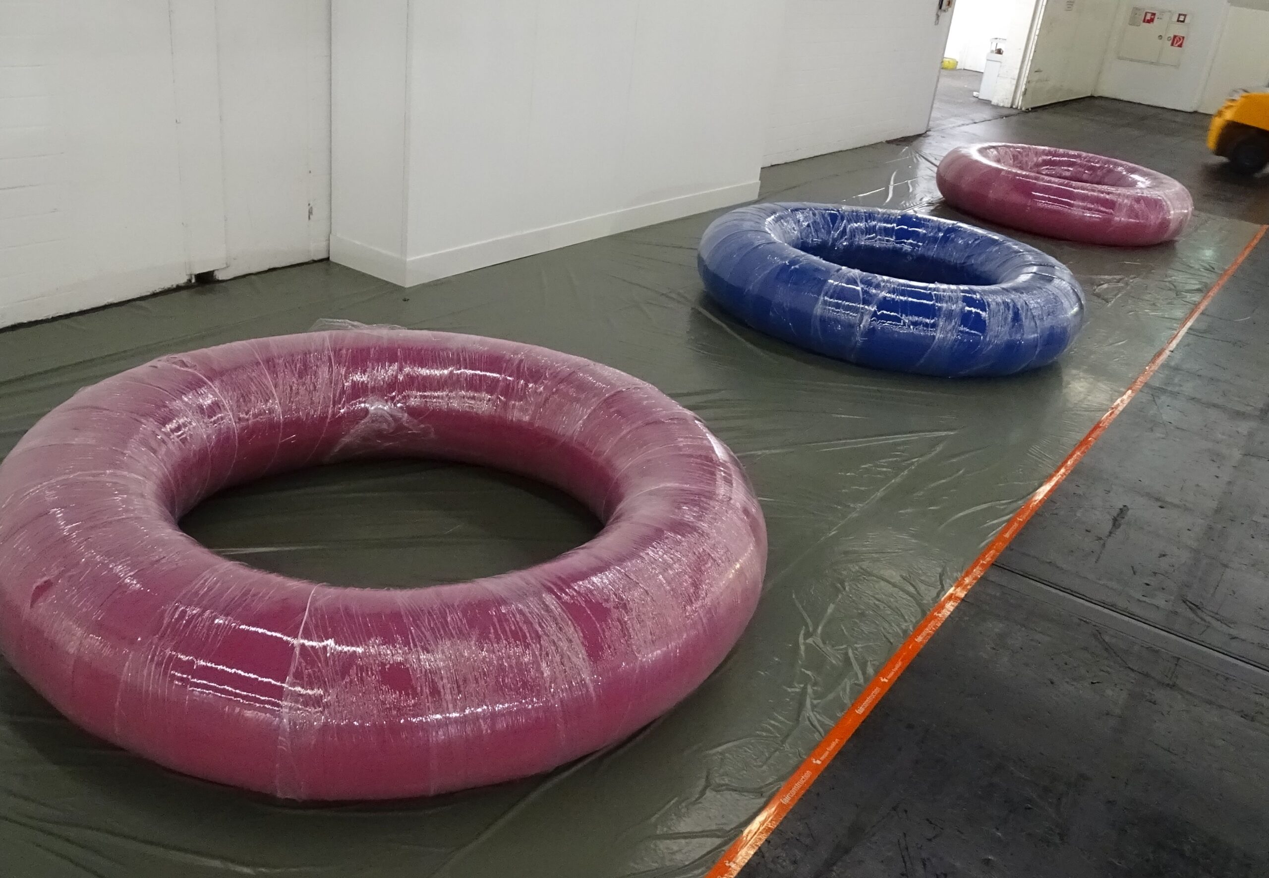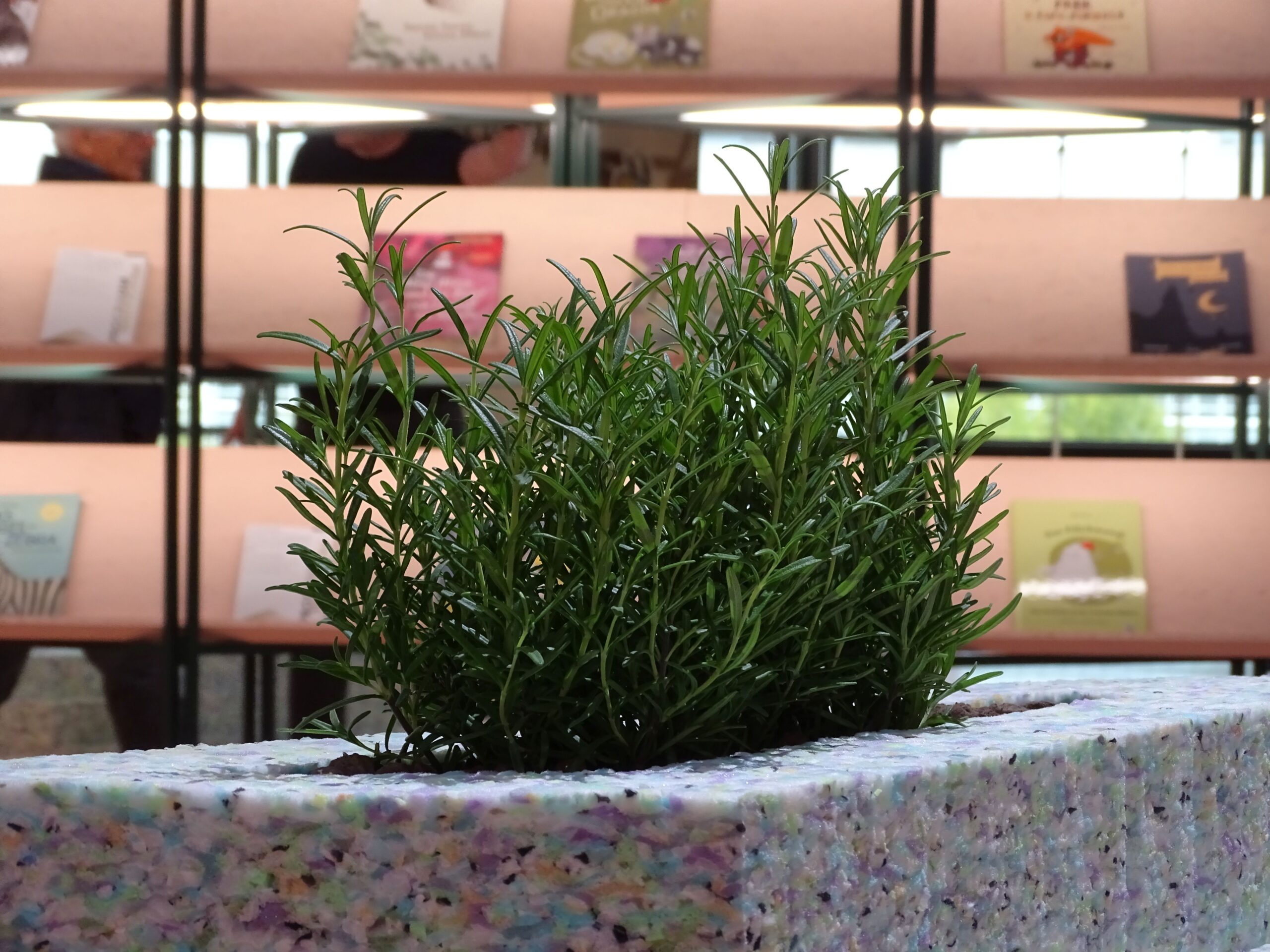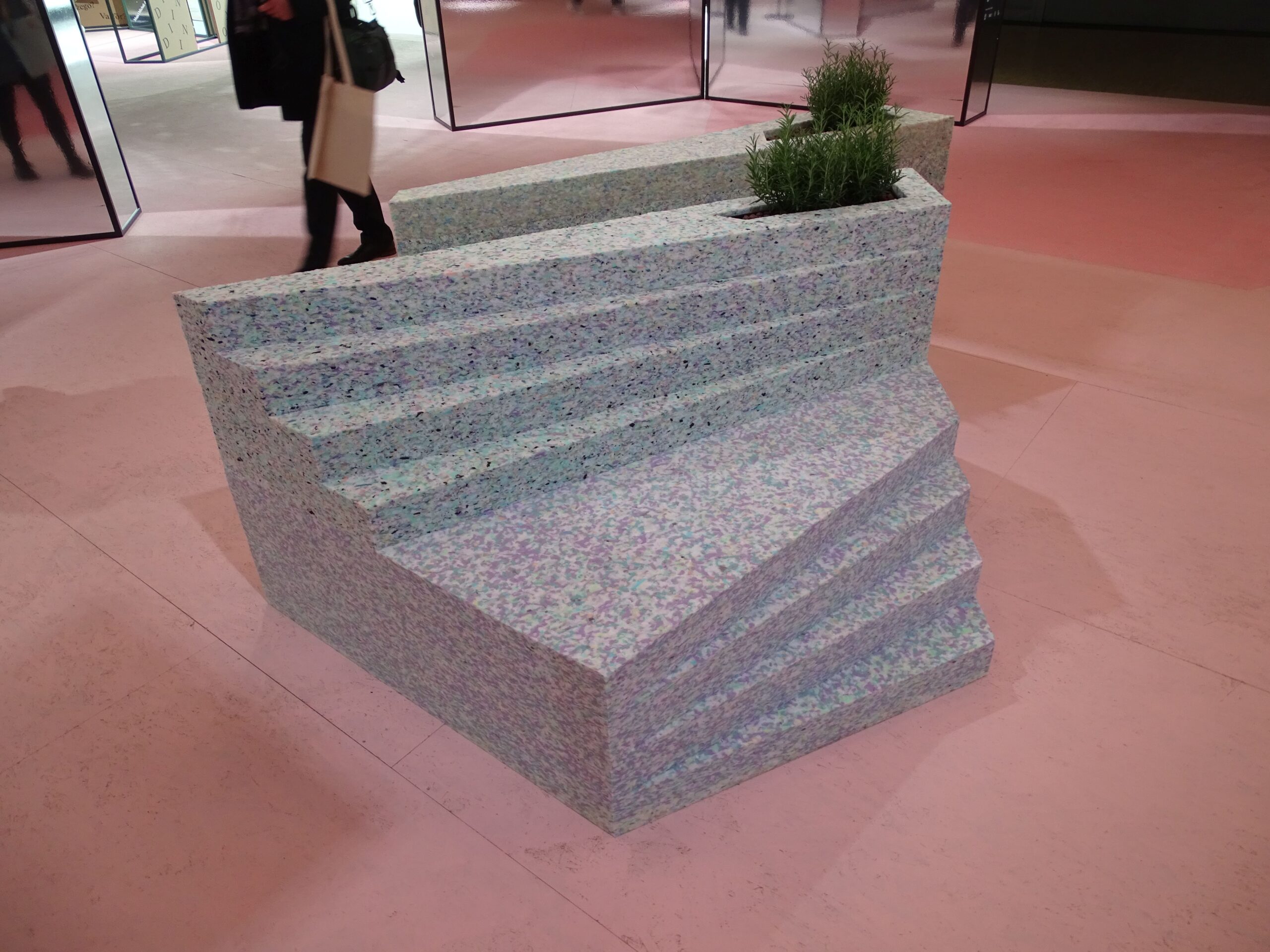 Es gab Sitzelemente aus recyceltem Schaumstoff: