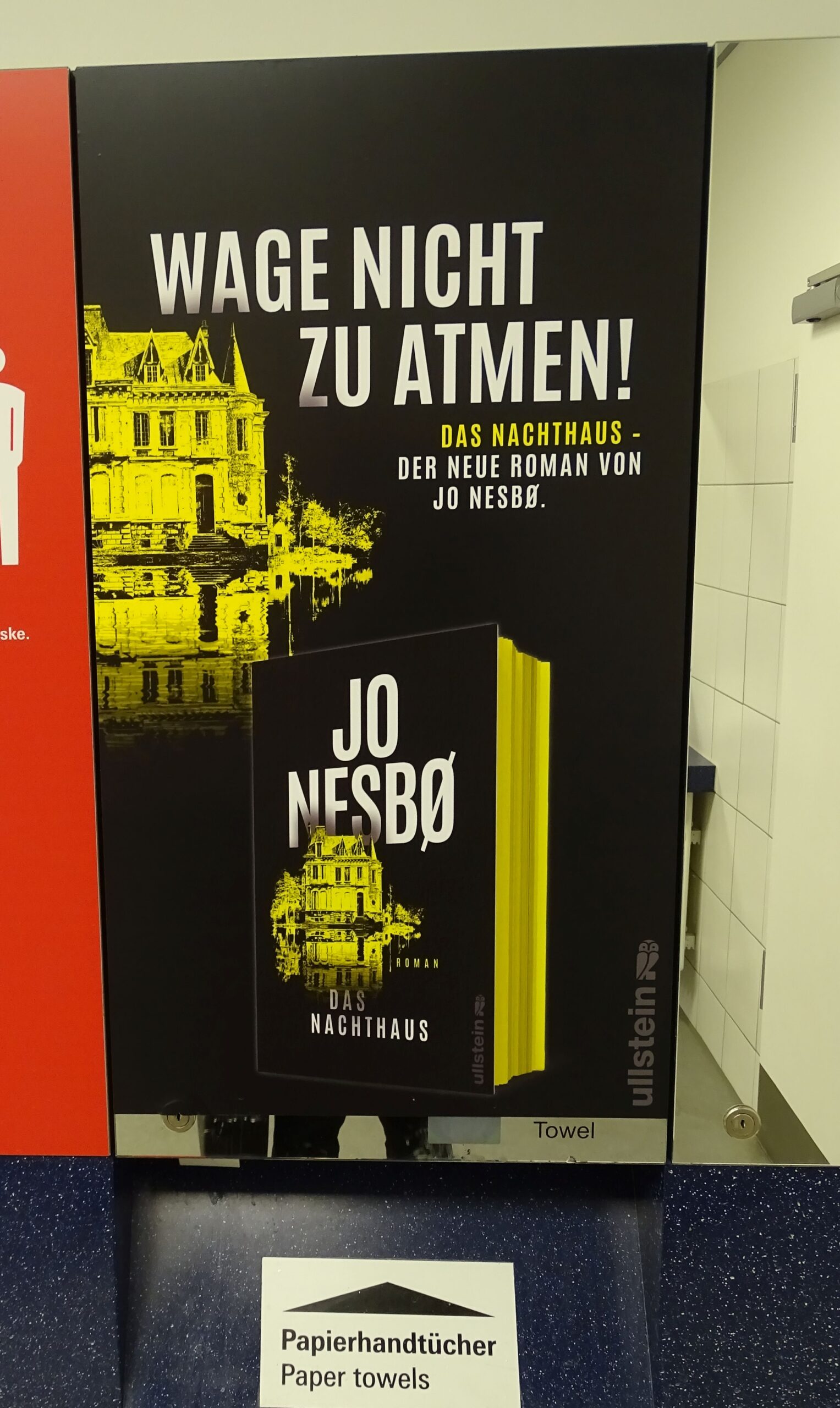 Und apropos Notdurft: Auf den Toiletten sind wieder Spiegel mit Werbung beklebt.