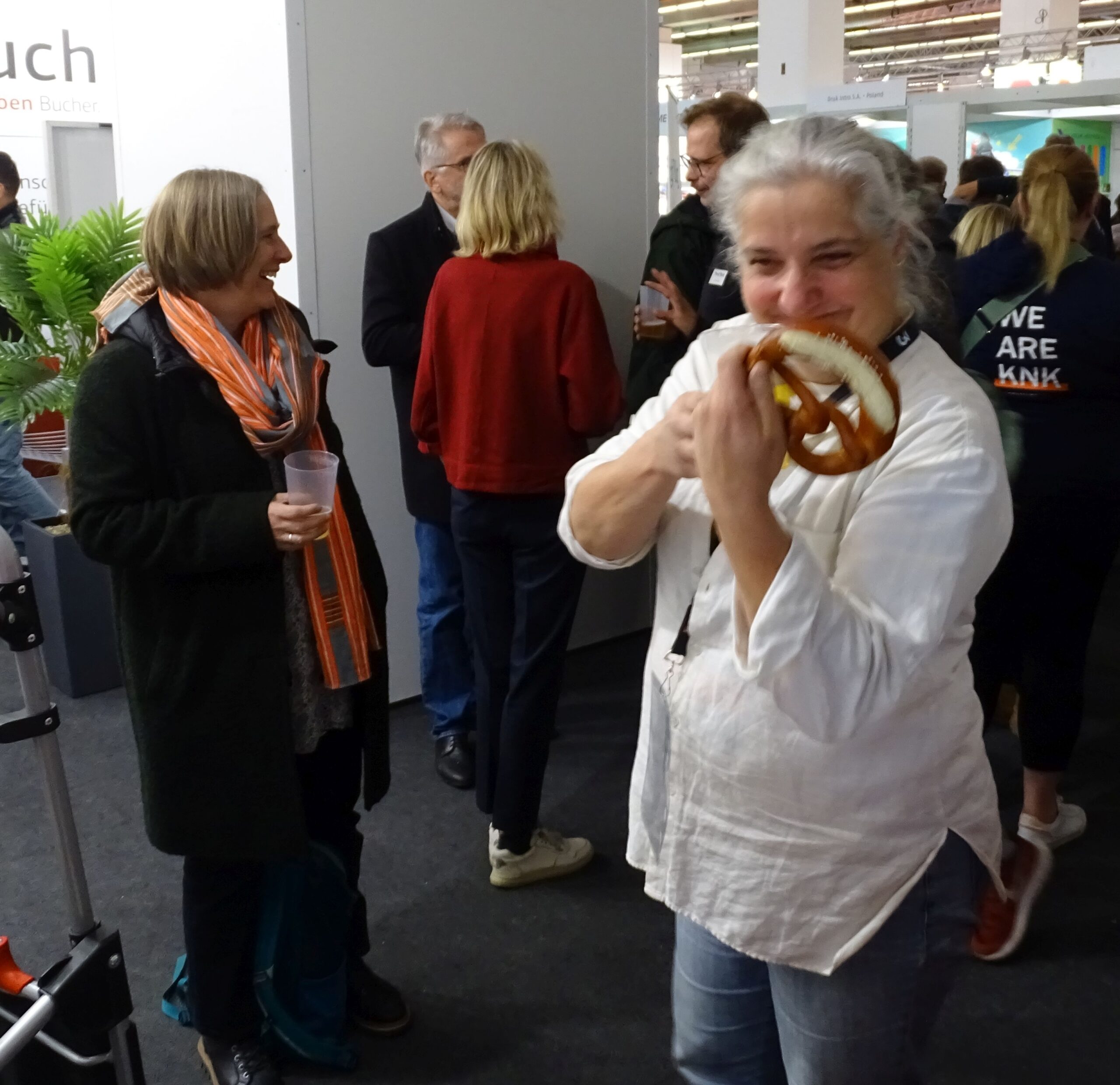 Aber endlich taucht auch Maren Ongsiek (links) vom Börsenverein des Deutschen Buchhandels auf einem meiner Fotos auf!
