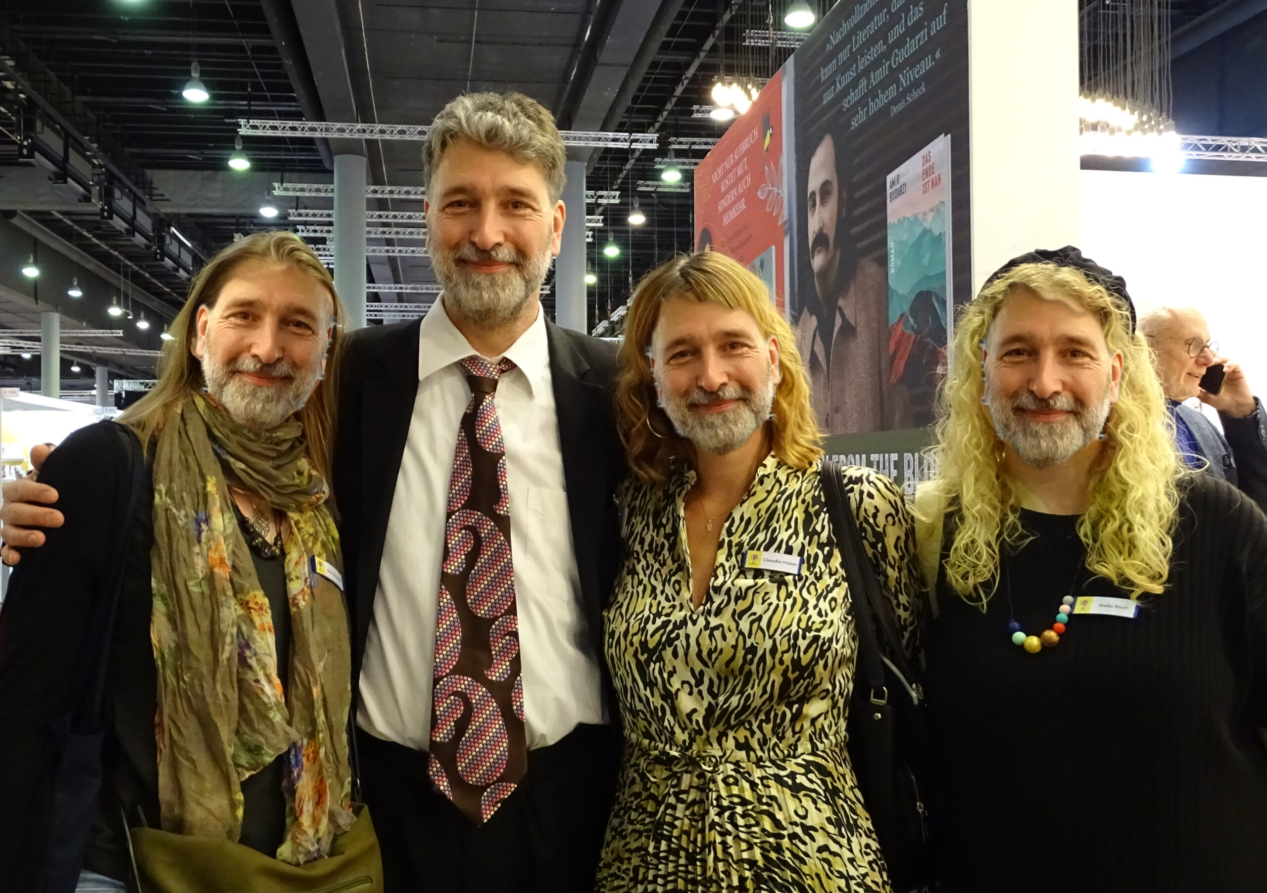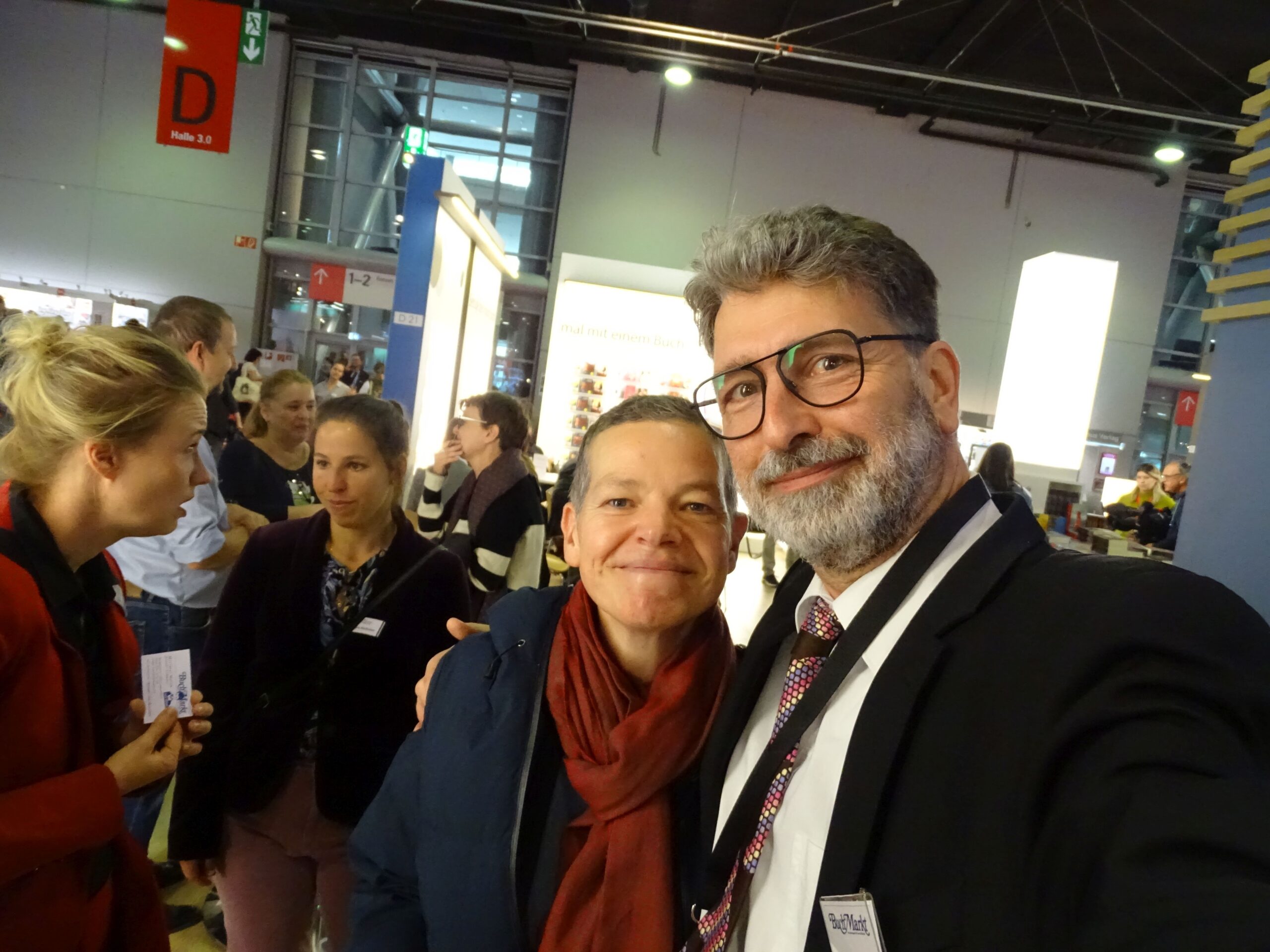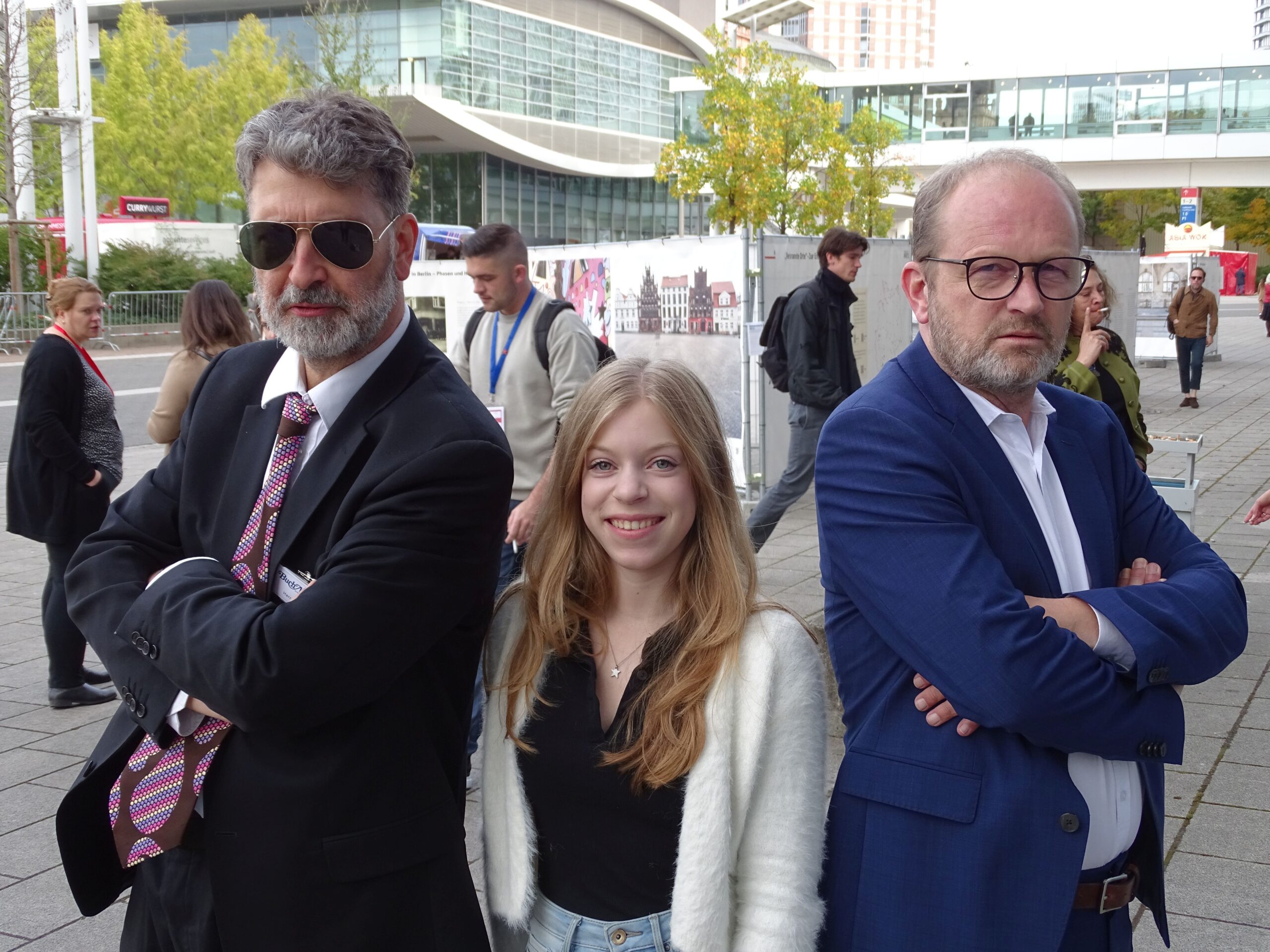 Neu ist, dass ich diese Woche tatsächlich eine Praktikantin dabei habe! Einige meiner Fotos hat nämlich Jule Wenzel gemacht. (Und nicht nur Maren Ongsiek!) Sie wollte eigentlich nur eine Woche lang Müll ausleeren in meinem langweiligen Buchladen, und jetzt zerre ich sie auf die Messe, wo lauter Verrückte herumlaufen!