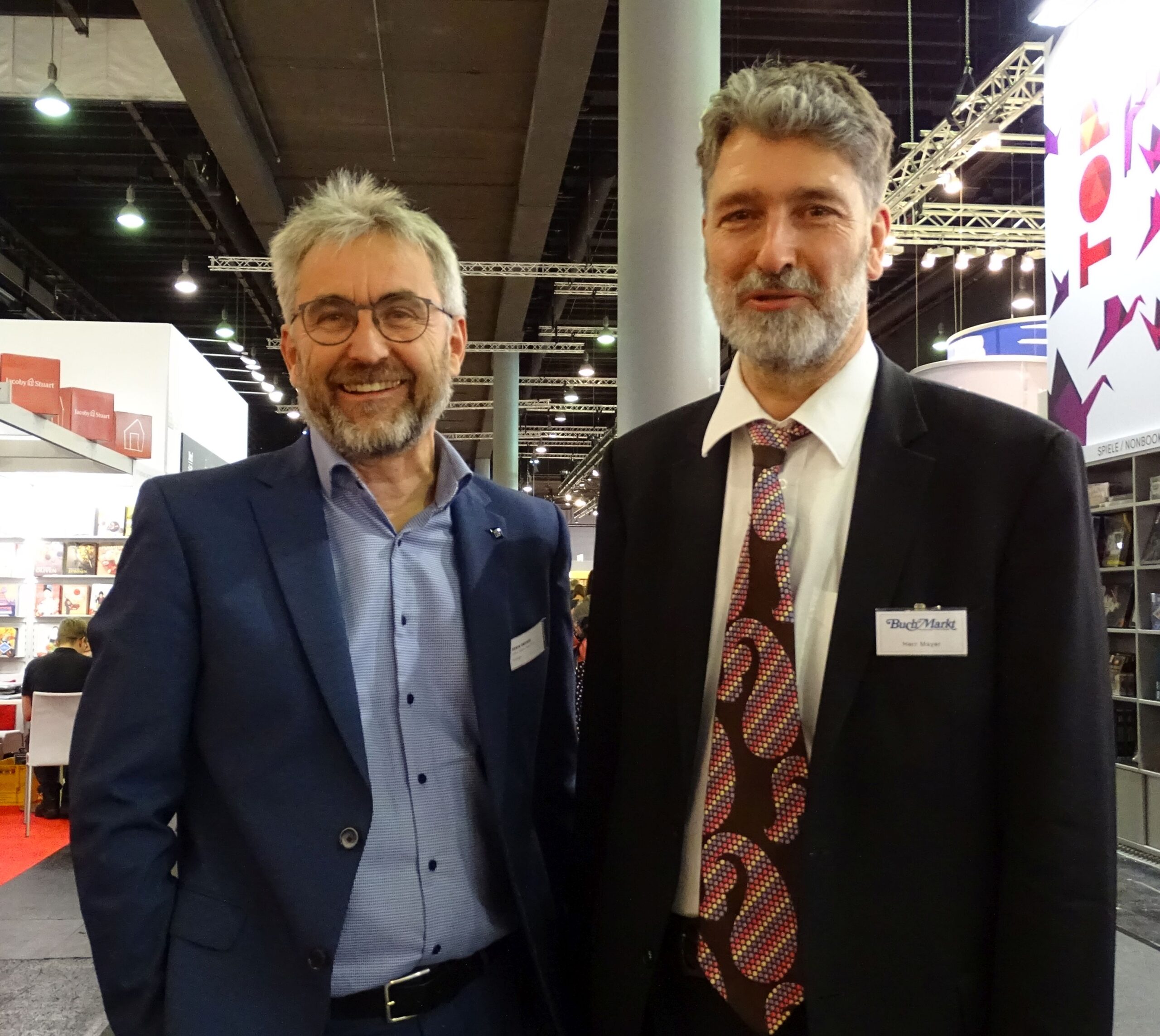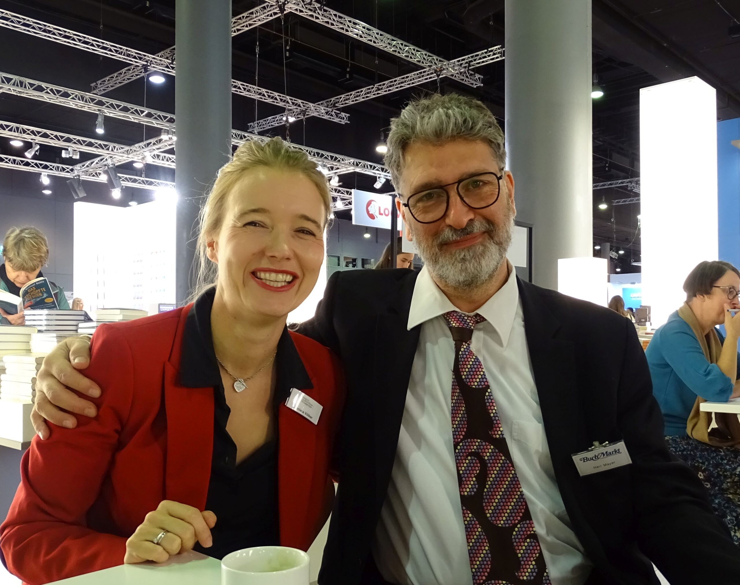 Hier treffe ich Claudia Holzer von Usborne, festes Messe-Mayer-Mitglied seit 2022. Eigentlich hatten wir ein schönes Gruppenfoto mit lauter Damen vom Usborne-Verlag gemacht, aber eine von ihnen war unvorteilhaft mitten im Blinzeln, und da habe ich mir gesagt: