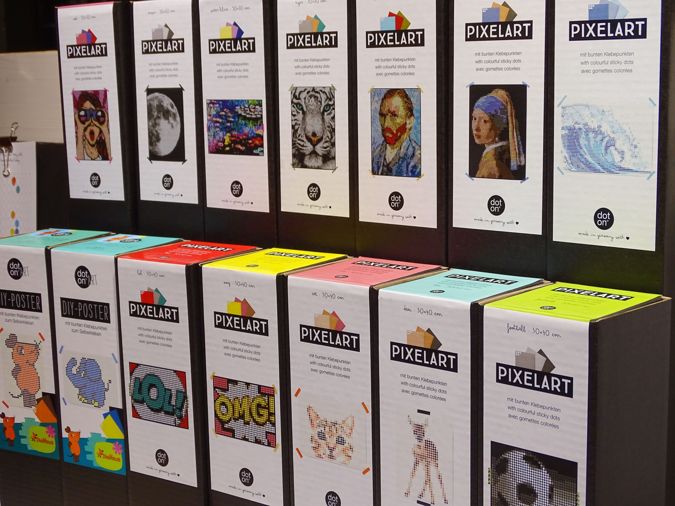 Im Bastel-, Spiel- und Geschenkebereich von Halle 3 finde ich mit Pixelart das Klebepunktprinzip als Produkt auf den Punkt gebracht: