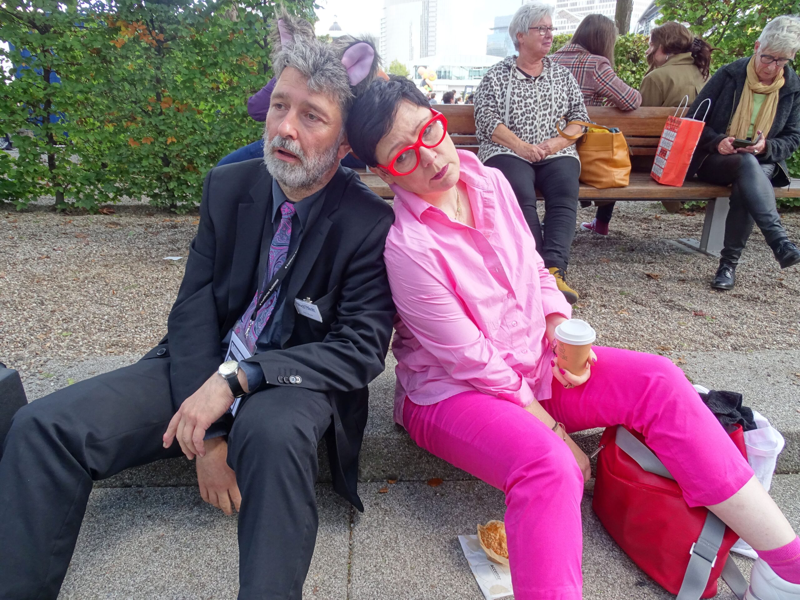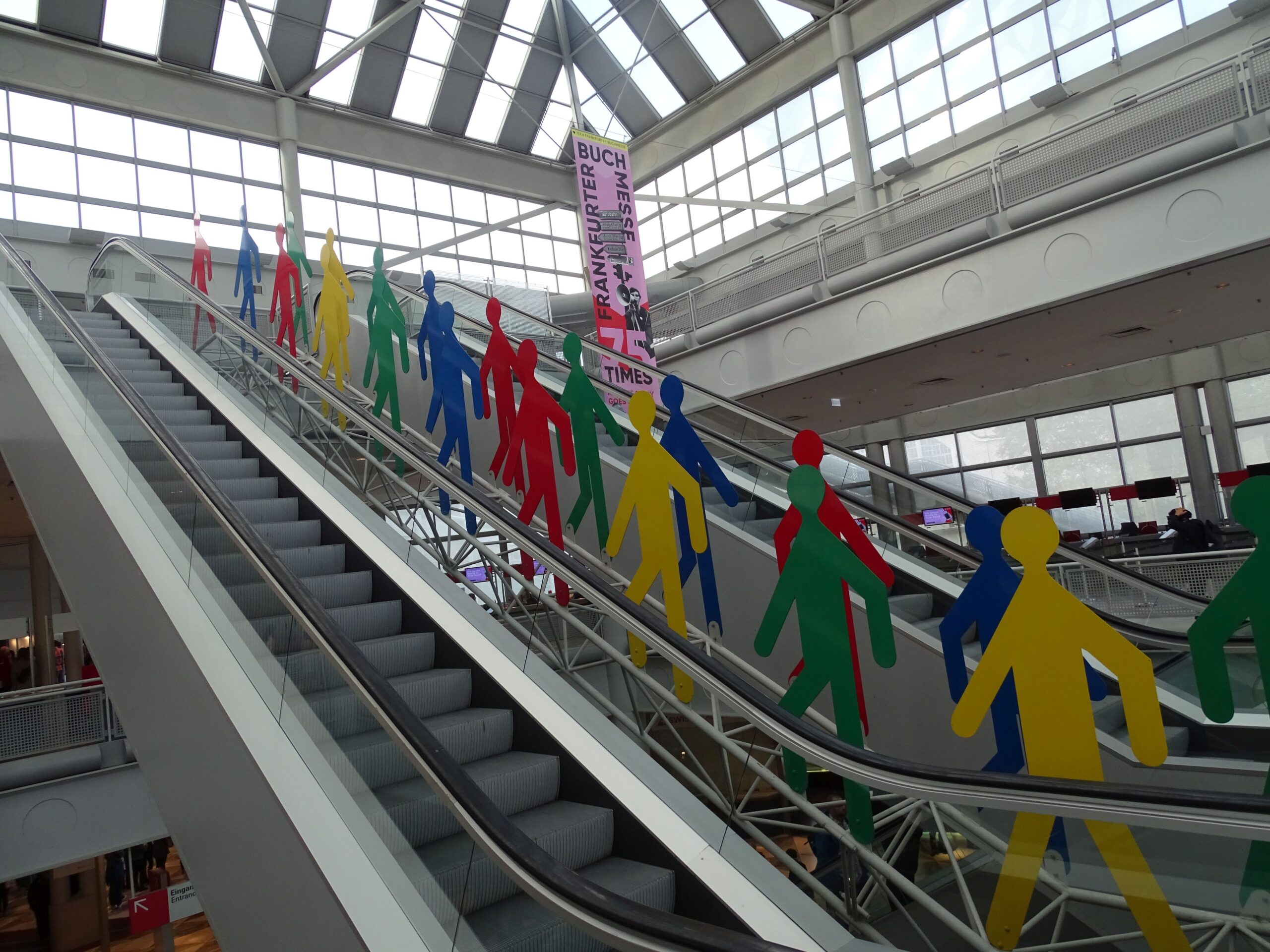 wenn ich für den Messesamstag (und die schon so weit fortgeschrittene Messewoche) zwei Sinnbilder heranziehen will, dann diese beiden: Erstens eine Buntschar, die treppauf will.