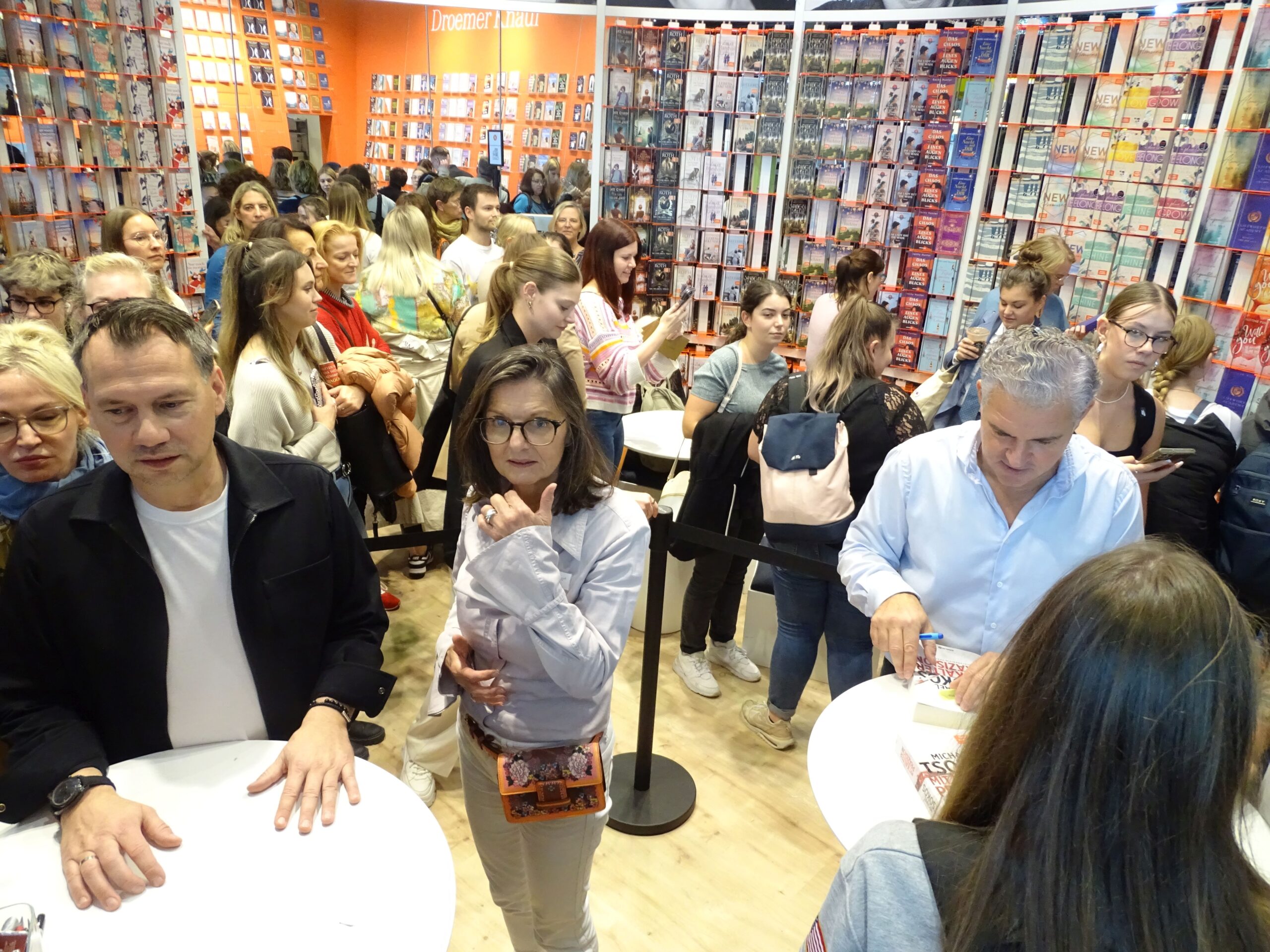 Heute war der Tag der Warteschlangen. Schon gestern verblüffte uns eine Menschenmenge, die auf Farbschnitte und Sonderdrucke aus war. Heute gab es wieder eine Sebastian-Fitzek-Schlange sondergleichen. Es gab Kaffeeschlangen, Churros-Schlangen, Toilettenschlangen, Schlangen an den Ein- und Ausgängen und Schlangen an den Rolltreppen.