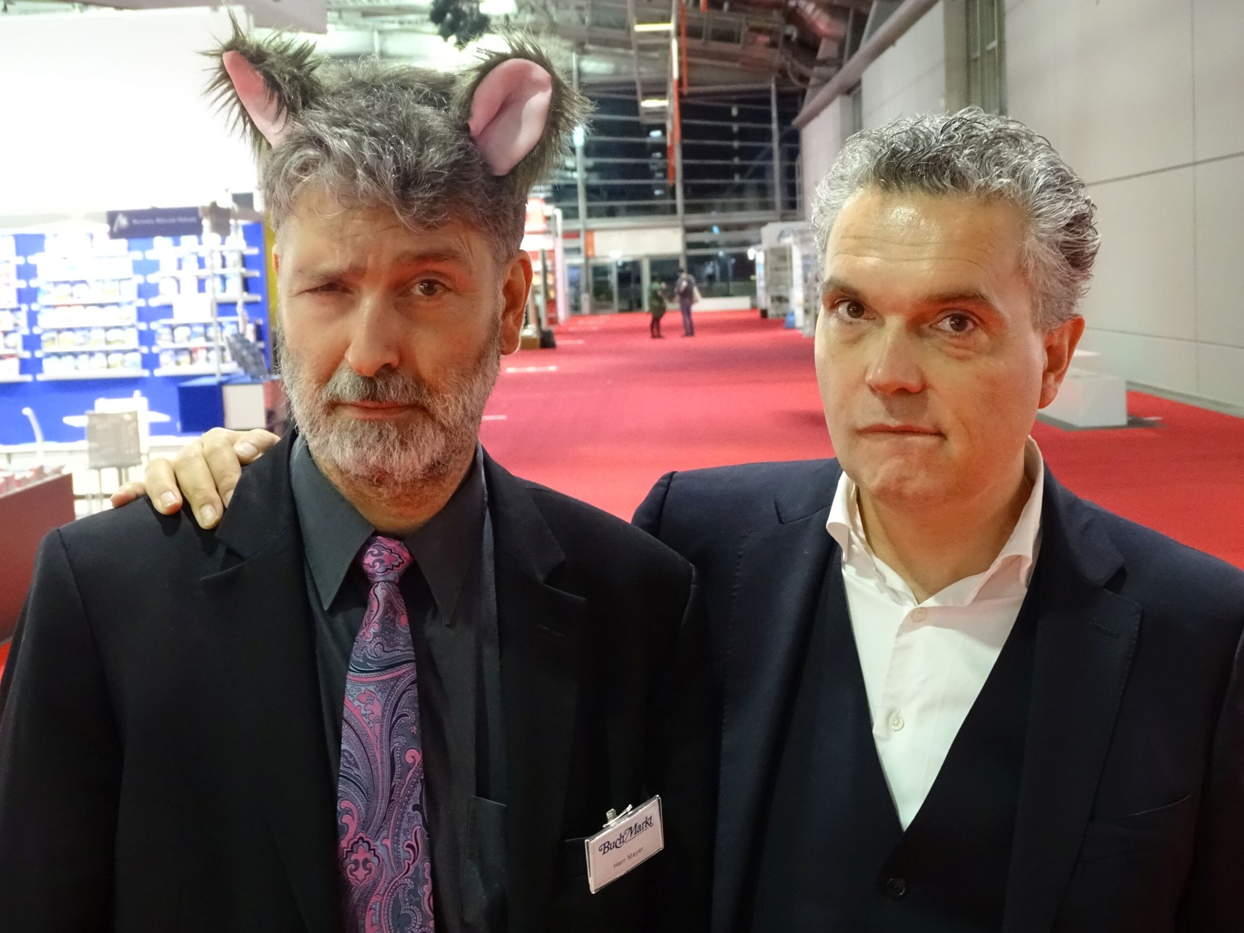 Und das hier ist sicher das schönste Exempel subtiler Skepsis, das ich je gesehen habe: Bernhard Fetsch vom Athesia-Kalenderverlag und ich. Ich verspreche nichts, aber ich will auf jeden Fall versuchen, nächstes Jahr zu Deinem berühmten Branchen-Abendessen zu kommen.