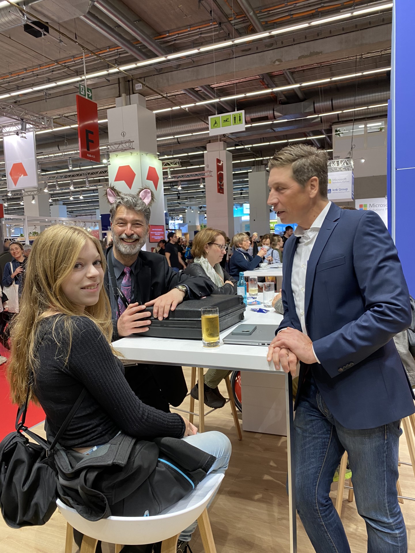 Und dann ist Jule hier richtig eingerastet: Sie hat meine Kamera bedient, sie hat auf meinen Koffer aufgepasst, wenn ich plötzlich irgendwo hinspringen musste. Sie ahnen nicht, wie oft man als Messe-Mayer plötzlich hüpfen muss, weil irgendwo ein Motiv vorbeiläuft.
