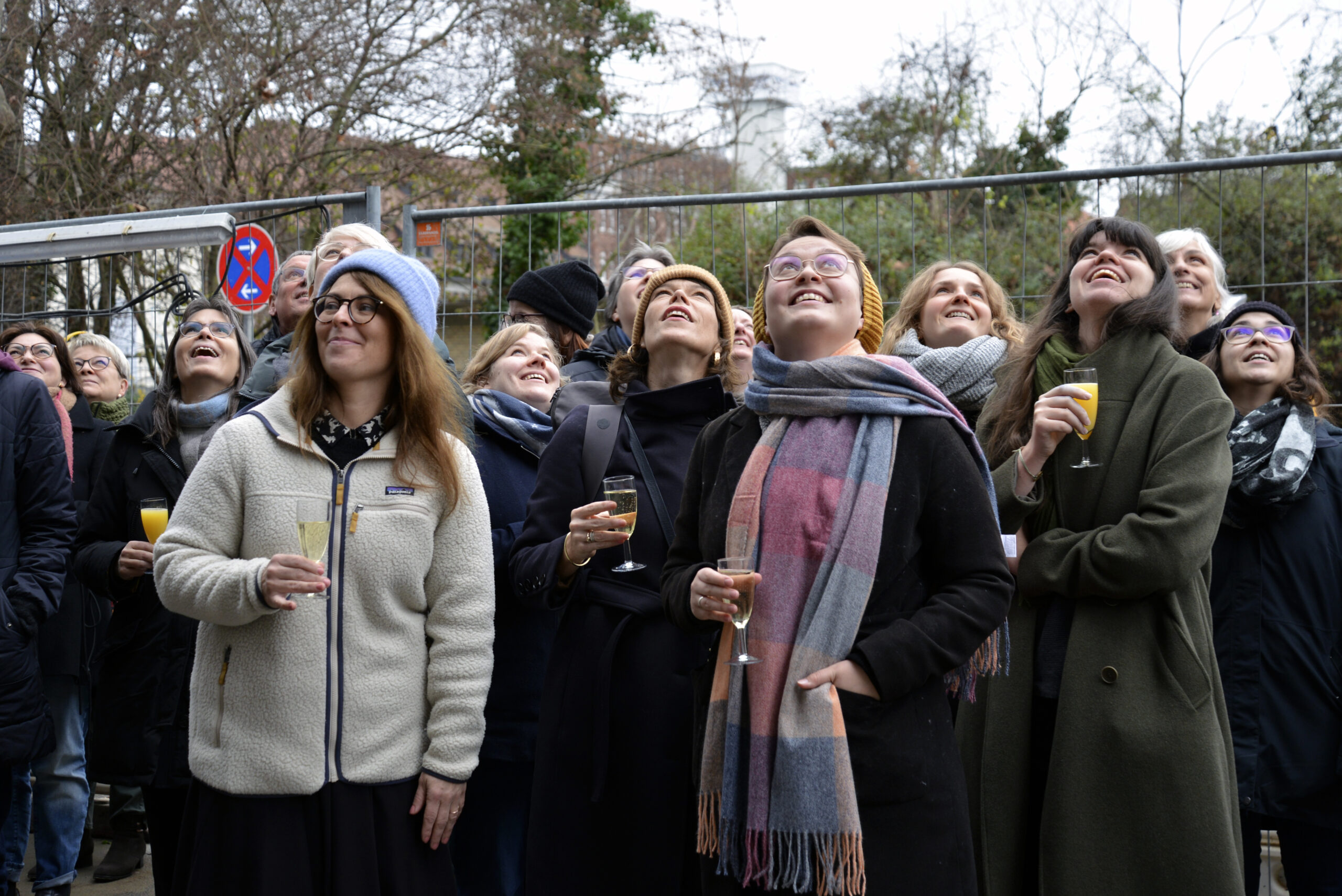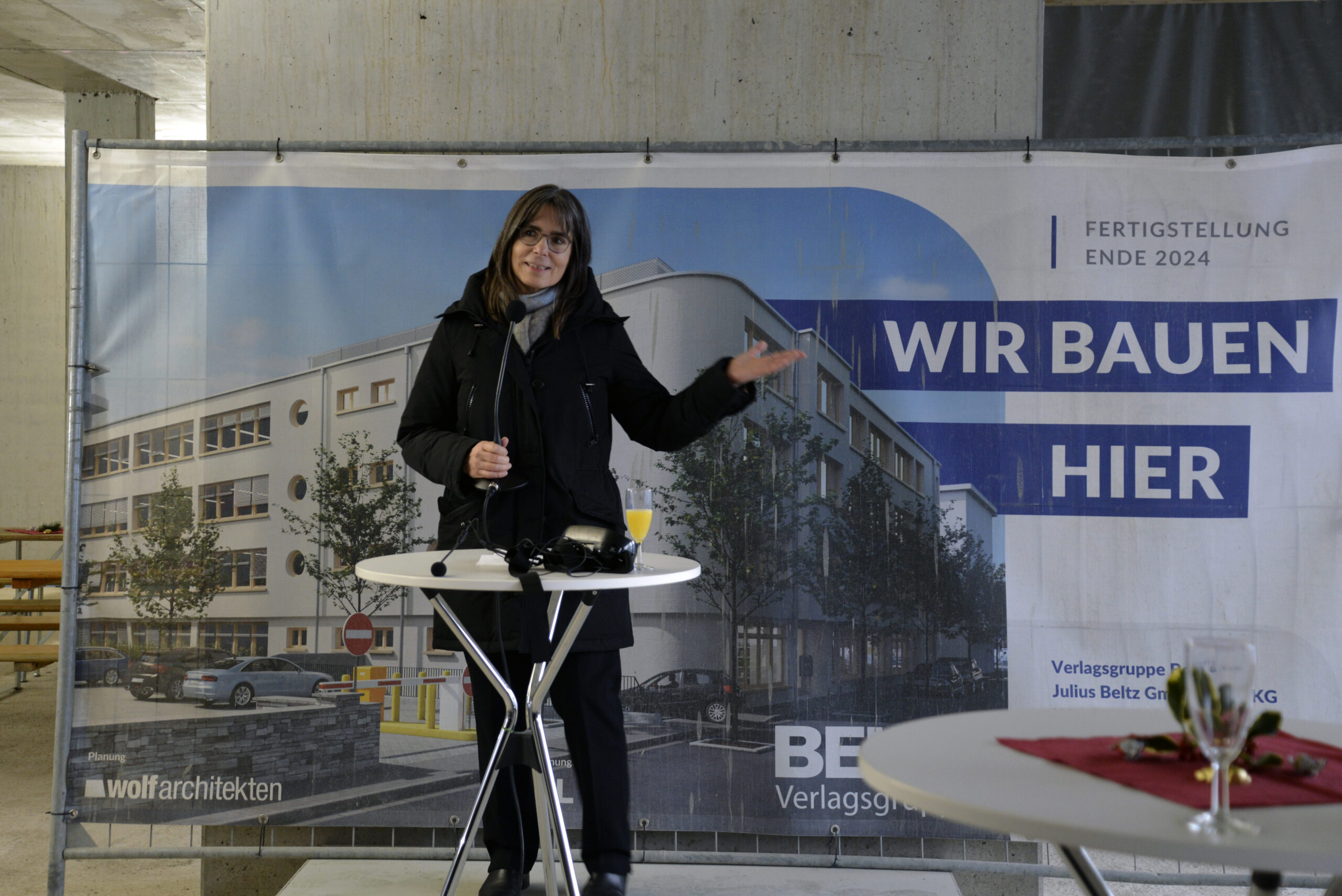Marianne Rübelmann erklärte, dass sie sich freue, gemeinsam mit allen Mitarbeiterinnen und Mitarbeitern auf das Abenteuer eines neuen Verlagsgebäude zu gehen.