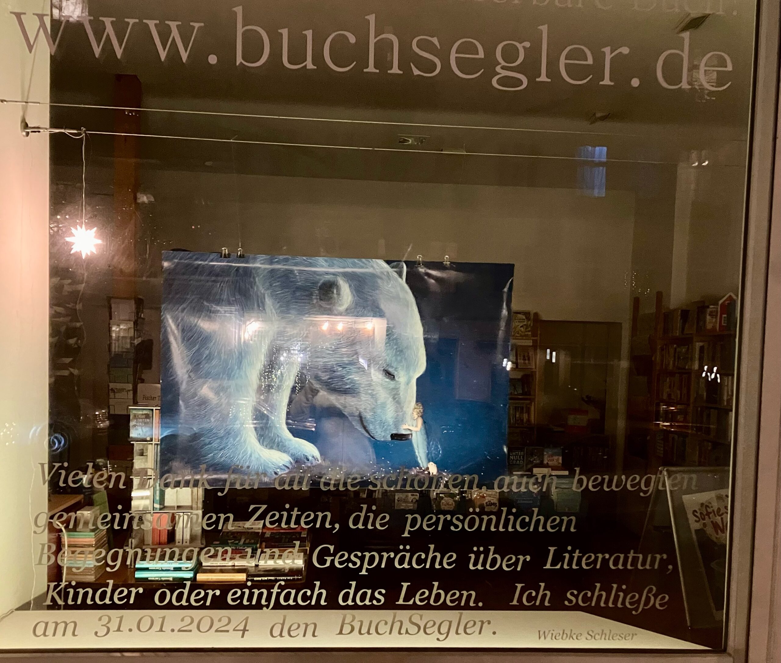 Anfang dieser Woche machte Wiebke Schleser, Inhaberin der auf Kinderliteratur spezialisierten Buchhandlung BuchSegler in Berlin-Pankow, offiziell, dass sie zum Ende des Monats schließen wird. „Vielen Dank für die schönen, auch bewegten gemeinsamen Zeiten, die persönlichen Begegnungen und Gespräche über Literatur, Kinder und einfach das Leben. Gerne bestellen wir noch bis zum 20. Januar alle lieferbaren Titel“, ist auf ihrem Schaufenster, der Website sowie Facebook und Instagram zu lesen.