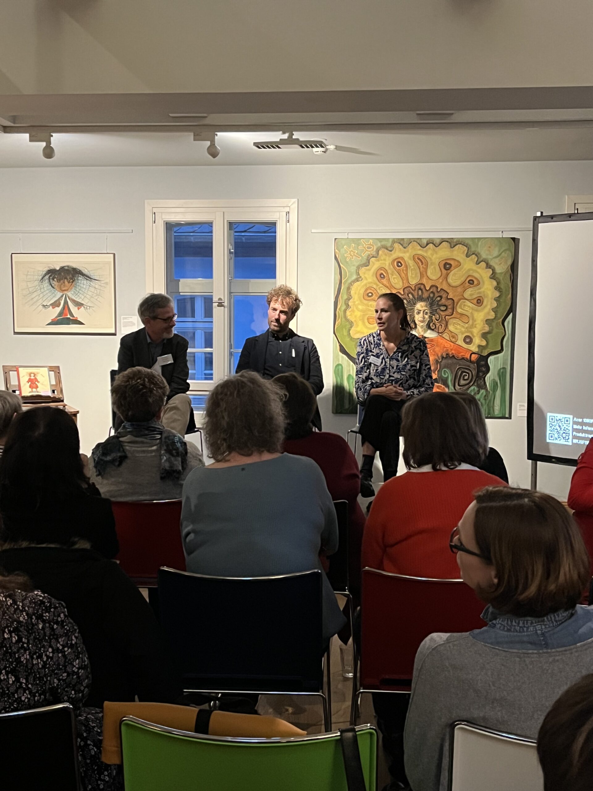 Am Samstag, den 24. Februar 2024, fanden sich 35 Buchhändler:innen aus dem Rhein-Main-Gebiet im Struwwelpeter Museum ein, um mit den Verlagen ins Gespräch über das aktuelle Kinderbuchprogramm zu kommen. Die Verlegerin Anna Kindermann und die Verlagsleiter Moritz Klein und Markus Weber stellten bei Kaffee und Kuchen ihre Programme und die neuesten Buchprojekte vor – darunter das neue Pappbilderbuch von Nadia Budde, ein Bilderbuch über die Entstehung des Earth Days und die bereits vielfach ausgezeichnete Kindheitsgeschichte der schwedischen Malerin Berta Hansson. Zudem war die Illustratorin Sabine Wilharm zu Gast und präsentierte ihre Werke aus dem Kindermann Verlag. Einige ihrer Illustrationen können derzeit in einer Sonderausstellung im Struwwelpeter Museum besichtigt werden. Außerdem gab sie einen exklusiven Einblick in die Hintergründe ihrer Illustrationen, insbesondere aus ihrem neuen Poesieprojekt, das im Herbst erscheinen wird.
