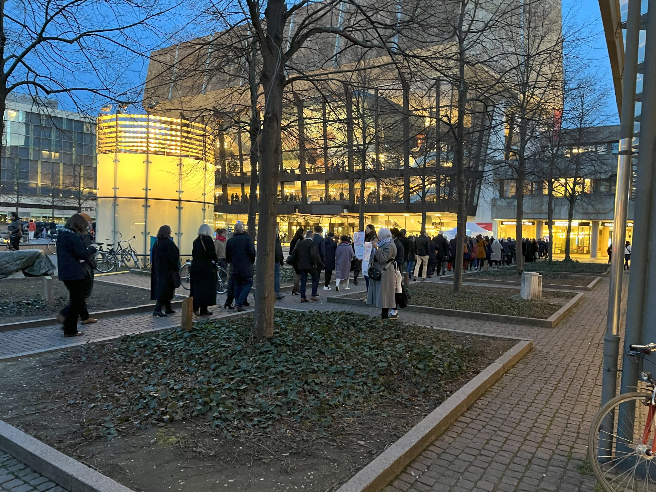 Die Schlange vor dem Leipziger Gewandhaus am Abend war durchaus beeindruckend, bewegte sich jedoch schnell auf den Eingang zu. Am Platz hatten die Veranstalter:innen Plakate positioniert und noch vor den eigentlichen Reden riefen Börsenvereins-Hauptgeschäftsführer Peter Kraus vom Cleff und Messedirektorin Astrid Böhmisch dazu auf, diese für ein Statement und Schaubild hochzuhalten. Die Message „Demokratie wählen. Jetzt“ entfaltete dann bereits im Laufe des Abends Wirkung und soll sich auch die kommenden Tagen in einem Diskussionsforum auf der Messe widerspiegeln.