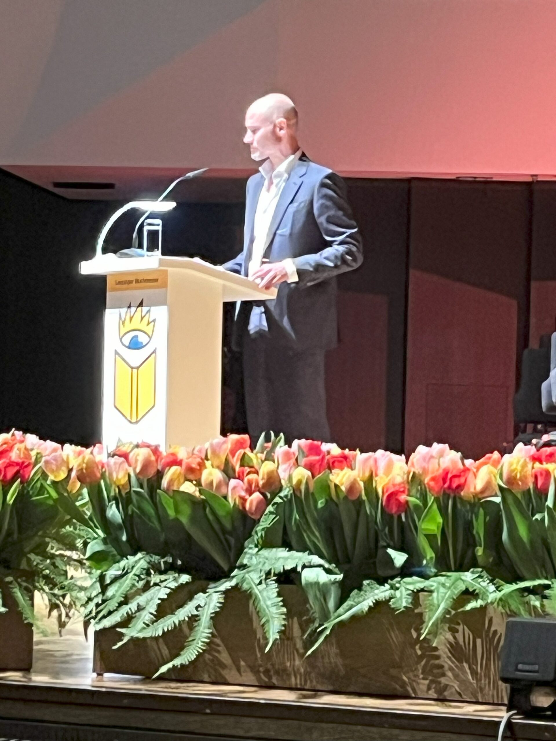 Die Schlange vor dem Leipziger Gewandhaus am Abend war durchaus beeindruckend, bewegte sich jedoch schnell auf den Eingang zu. Am Platz hatten die Veranstalter:innen Plakate positioniert und noch vor den eigentlichen Reden riefen Börsenvereins-Hauptgeschäftsführer Peter Kraus vom Cleff und Messedirektorin Astrid Böhmisch dazu auf, diese für ein Statement und Schaubild hochzuhalten. Die Message „Demokratie wählen. Jetzt“ entfaltete dann bereits im Laufe des Abends Wirkung und soll sich auch die kommenden Tagen in einem Diskussionsforum auf der Messe widerspiegeln.