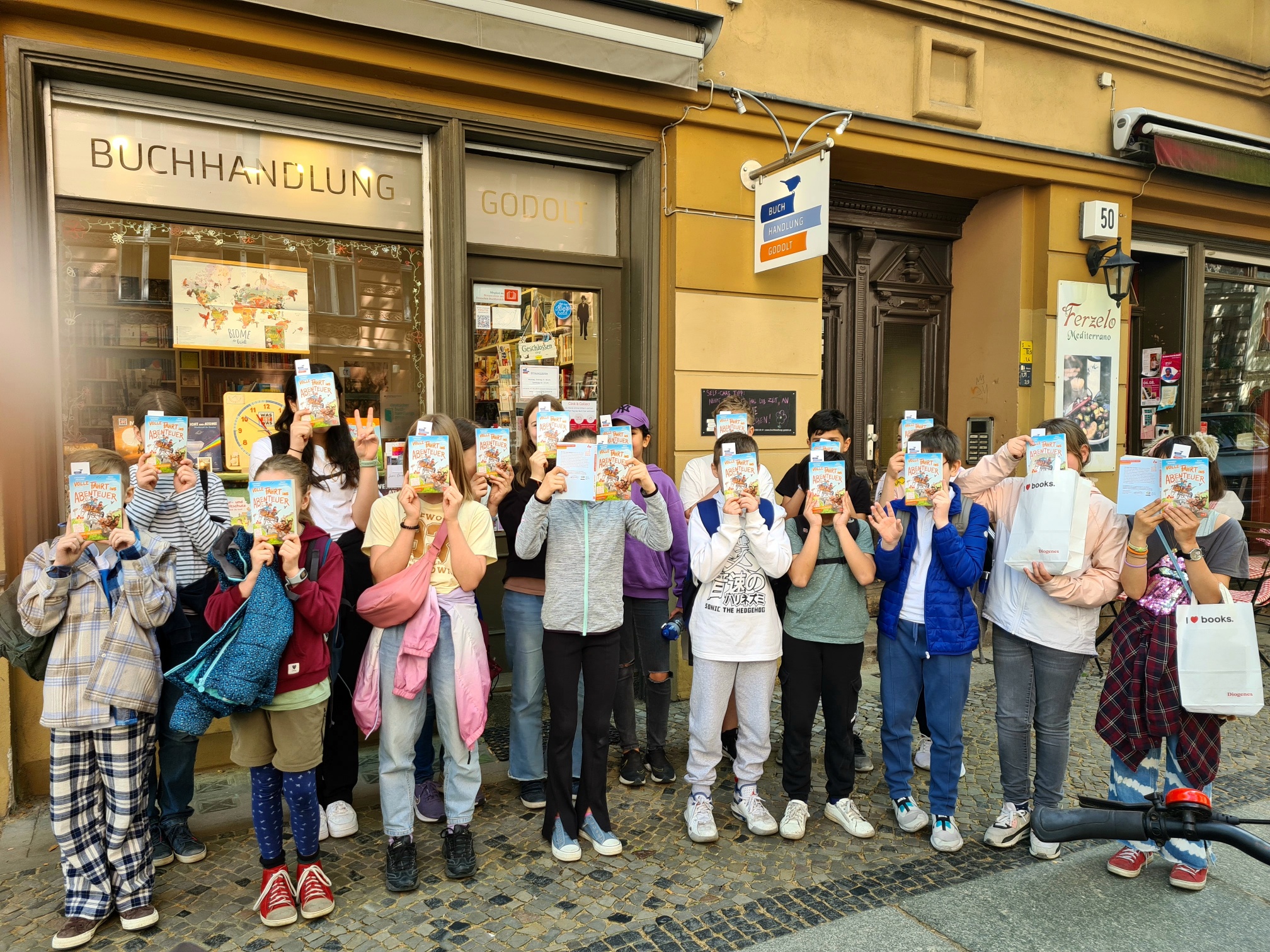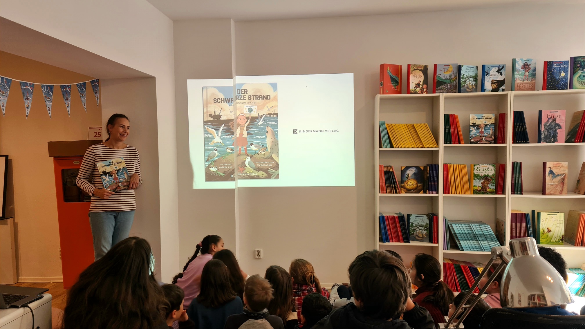 In diesen Wochen laden zahlreiche Buchhandlungen Kinder ein, im Rahmen der Aktion „Ich schenk Dir eine Geschichte“ zum heutigen Welttag des Buches die Welt des Lesens näher zu erkunden. So auch die Buchhandlung Godolt in Berlin-Charlottenburg. Dieses Jahr gibt es ein kleines Highlight: Die Buchhandlung kooperiert erstmals mit dem direkt gegenüber ansässigen Kindermann Verlag. So bietet sie den Schüler:innen aus Berlin (und Umland) vom 22. April bis zum 31. Mai ein spannendes und abwechslungsreiches Programm. An vier der insgesamt 18 Termine finden die Lesungen direkt in den Räumlichkeiten des Kindermann Verlags statt. Dort erwartet die Teilnehmer neben der Lesung eine kleine Verlagsvorstellung mit Einblicken in das Kinderbuchprogramm.