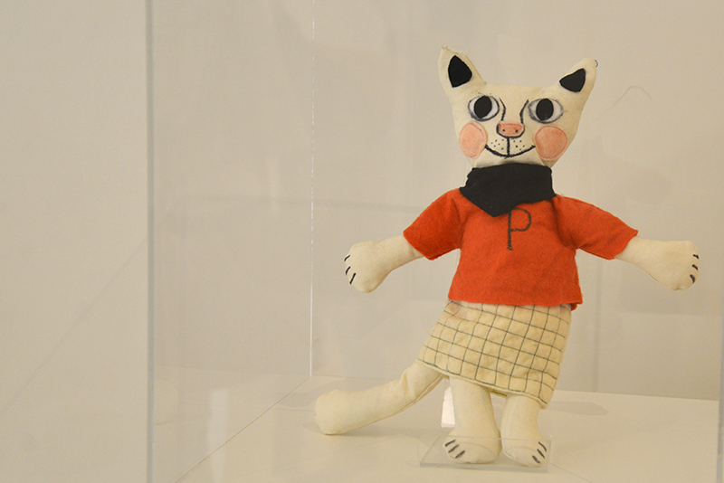 Neben Buchillustrationen sind auch freie Arbeiten zu sehen, wie die Streichholzschachteln, in die die Künstlerin kleine Welten aus Papier installiert, außerdem Vögel aus Papier oder Holz sowie eine Pizzakatze aus Stoff, die zum gleichnamigen Bilderbuch im Peter Hammer Verlag gehört – dafür hatte Antje Damm erstmals den Text eines anderen Autors illustriert: Will Gmehling war ebenfalls zur Vernissage angereist.