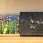 Das Bühnenbild für diesen im Eingangsbereich präsentierten Raum wurde von Lena Sofuoglu entworfen. Praktisch umgesetzt hat es, wie viele andere Details der Werkschau auch, der ehemalige Hausmeister des Bilderbuchmuseums, Peter Reim. Antje Damm zeigte sich bei der Eröffnung gerührt und dankbar für die Gestaltung der Ausstellung. Denn ihr sei besonders wichtig gewesen, dass Kinder hier nicht „nur“ Bilder sehen, sondern auch selbst kreativ werden können – auf sie warten noch zahlreiche andere Mitmach-Möglichkeiten –, und dass Vitrinen für sie in Augenhöhe bereitgestellt werden.