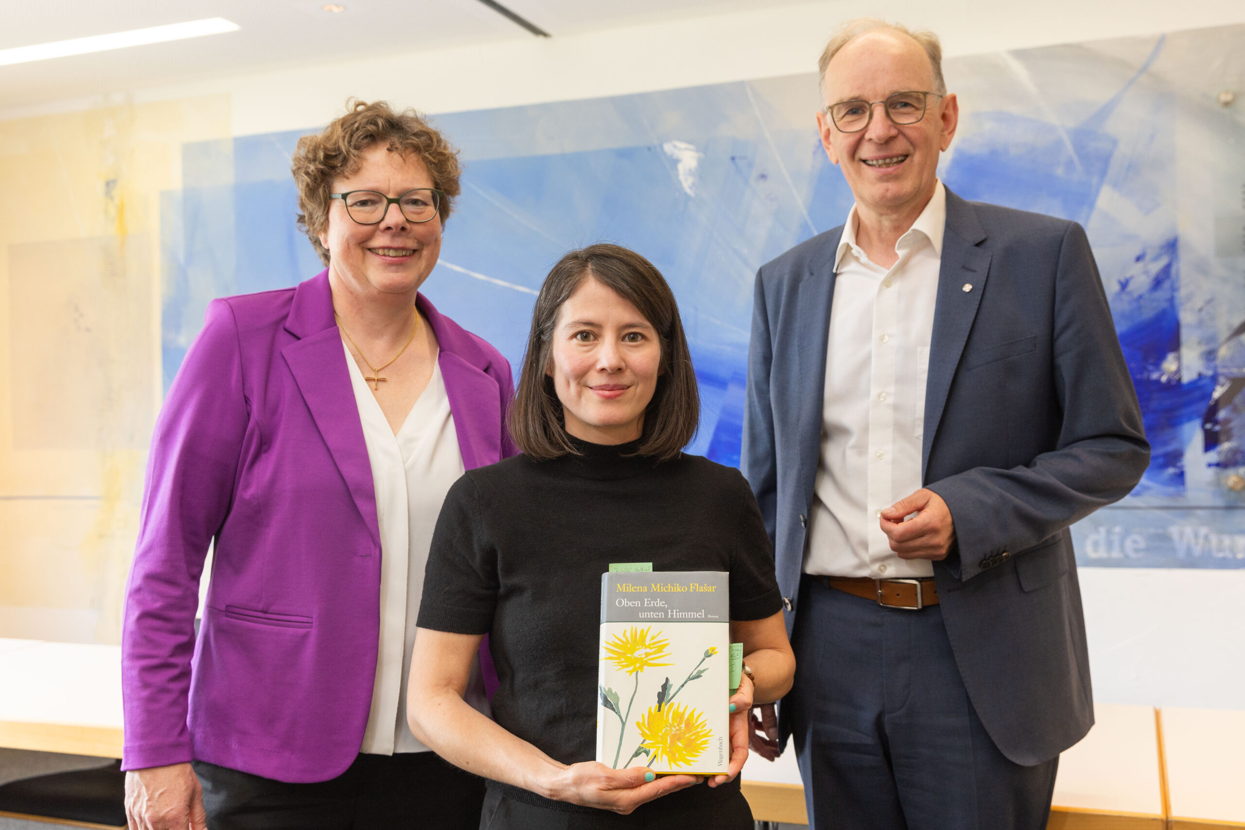 Die Schriftstellerin Milena Michiko Flašar ist am Mittwoch (15. Mai) in Kassel mit dem Evangelischen Buchpreis 2024 ausgezeichnet worden. Sie erhielt den mit 5.000 Euro dotierten Preis für ihren Roman Oben Erde, unten Himmel, der sich mit dem Thema einsames Sterben auseinandersetzt. „Wir haben es mit nichts Geringerem zu tun als einem literarischen Wunder“, würdigte Annemarie Stoltenberg (NDR) den Roman in ihrer Laudatio während der Feierstunde im Haus der Kirche.