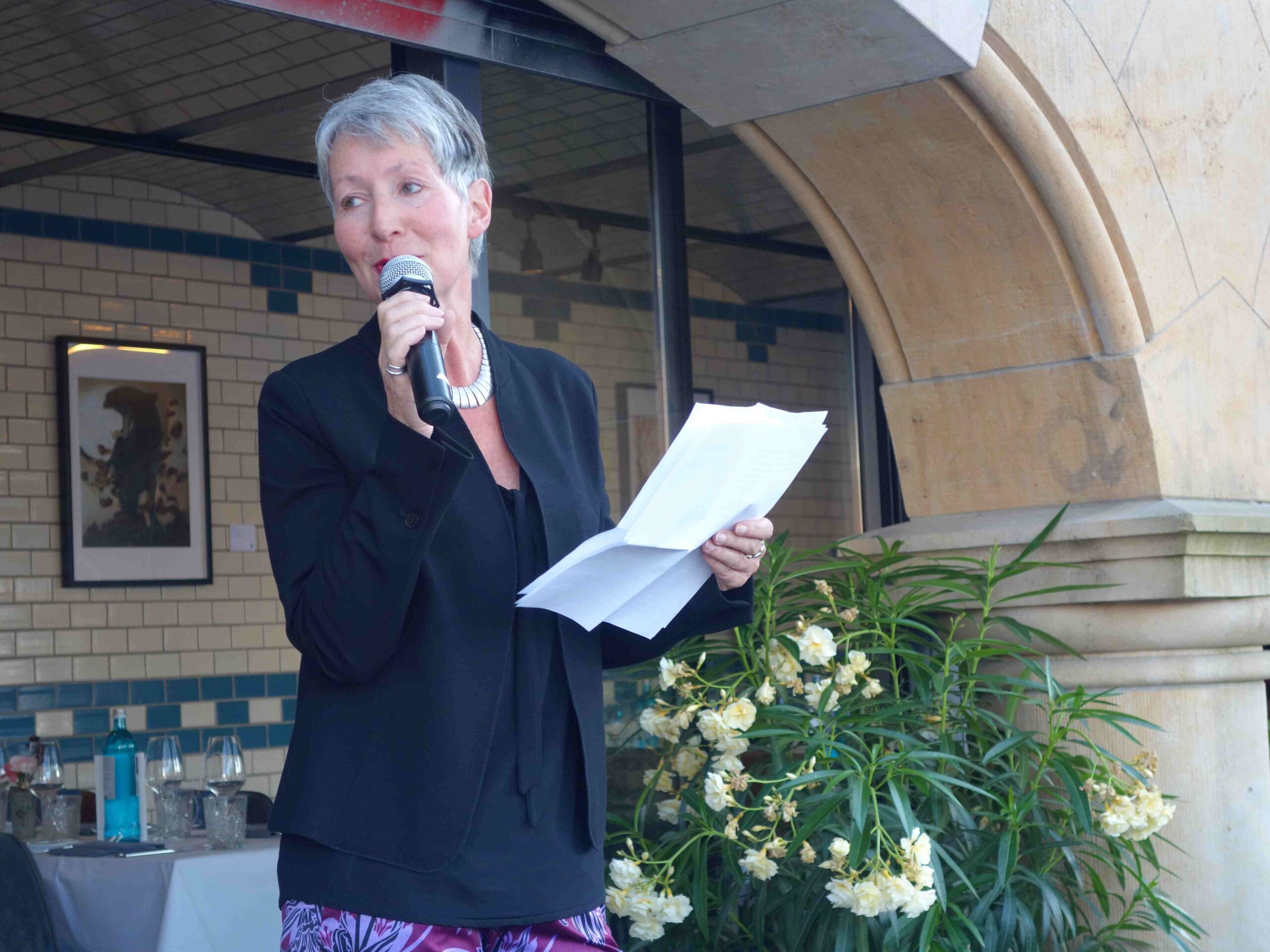 Die weiteren Rednerinnen des Abends brachten beide ihre Wertschätzung für Barbara und Anna Kindermann zum Ausdruck. Christine Paxmann, Herausgeberin des Magazins Eselsohr, war eigens aus München angereist und erzählte in ihrer Rede von ihrem Staunen über die Kindermann-Bücher: „Klassiker müssen nicht stauben!“ Sie habe Barbara Kindermann als Verlegerin und Autorin stets bewundert. Und genauso bewundere sie heute deren Tochter Anna für ihre kluge Arbeit.