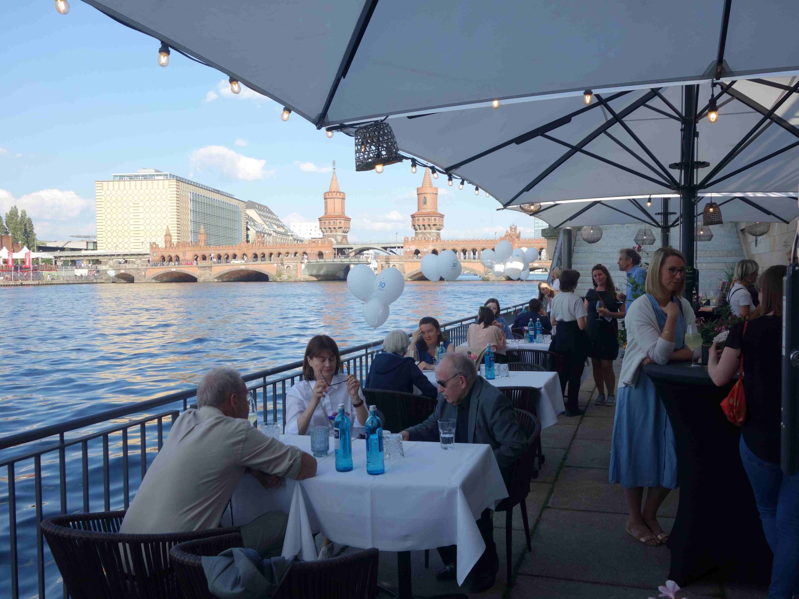 Die Musik der jungen Sängerin Morea und die mediterrane Atmosphäre auf der Terrasse gaben dem Abend einen entspannten Rahmen. Später wurde vor der Spreekulisse noch lange getanzt und geredet. Bleibt die Frage nach dem Herbstprogramm. Dann erscheint unter anderem in der Reihe Poesie für Kinder ein Sammelband mit „Gedichten für schöne Tage“, illustriert von Sabine Wilharm. Der passende Titel: Herzlichen Glückwunsch!