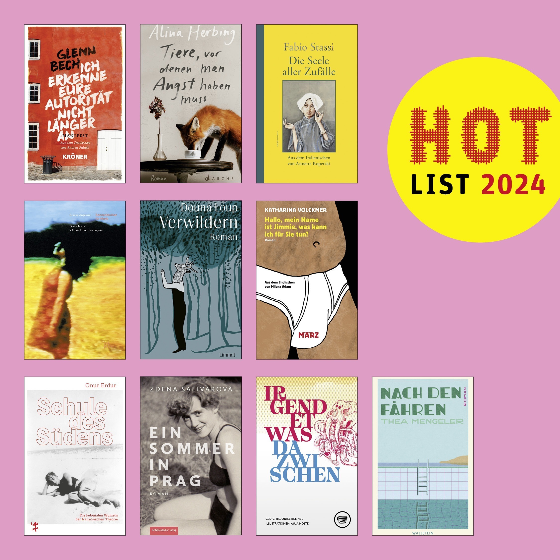 Die HOTLIST 2024, das sind zehn ausgezeichnete Bücher aus unabhängigen Verlagen, wurde gewählt – das sind die Titel in alphabetischer Reihenfolge: