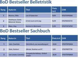 News Dark Romance von Dillie Moreno auf der BoD-Bestsellerliste Neues Jahr, neues Ranking: Auf der Belletristik-Bestsellerliste des Selfpublishing-Dienstleisters BoD Weiterlesen 07/01/2025 Keine Kommentare