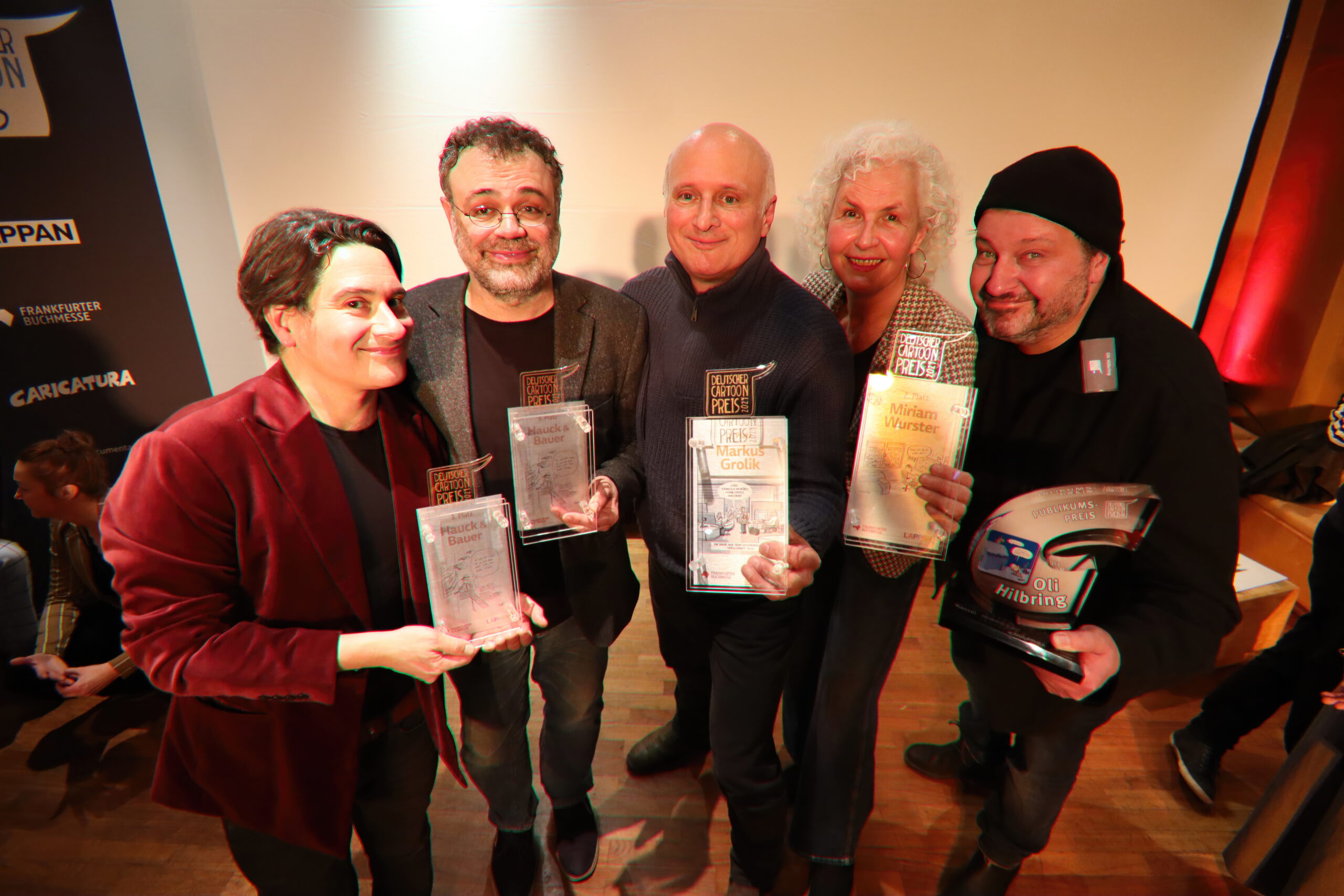 Die Gewinner:innen des Deutschen Cartoon Preises, in der Mitte Markus Grolik (Foto: Caricatura)