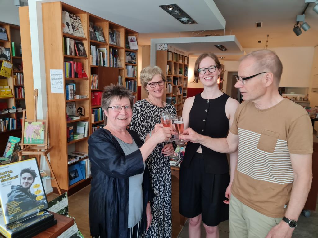 Vor allem aber ist es ein Abend der Begegnung, der Kultur, der Wertschätzung und der Freude darüber, was war und kommt. In der Pause stehen Marion und Johanna Leibecke unten an der Bühne. Das Mutter-Tochter-Gespann führt die Buchhandlung fortan weiter, wir berichteten unter anderem im BuchMarkt-Heft 10/24 in einem Interview mit Beate Scherzer davon. Auch sie haben „Schönes“ in Form besonderer Nonbooks in Konzept integriert und setzen weiterhin auf hochwertige Veranstaltungen.