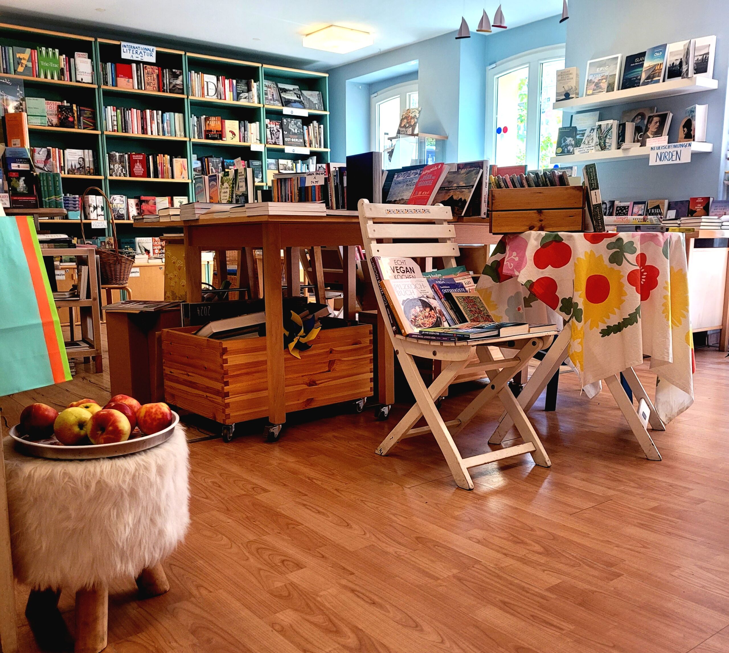Pankebuch liegt in Pankow, im Norden Berlins. In der Nähe verläuft die Panke, der drittgrößte Berliner Fluss. Katrin Mirtschink und Petra Wenzel beschäftigen sich schon lange mit der Literatur aus dem Norden, die hier schwerpunktmäßig angeboten wird. Konkret heißt das, dass es für alle Muttersprachler:innen und Lernenden Bücher auf Dänisch, Finnisch, Isländisch, Norwegisch und Schwedisch gibt, neu und second hand, vom Kinderbuch bis zum Klassiker, aber auch entsprechende Übersetzungen.