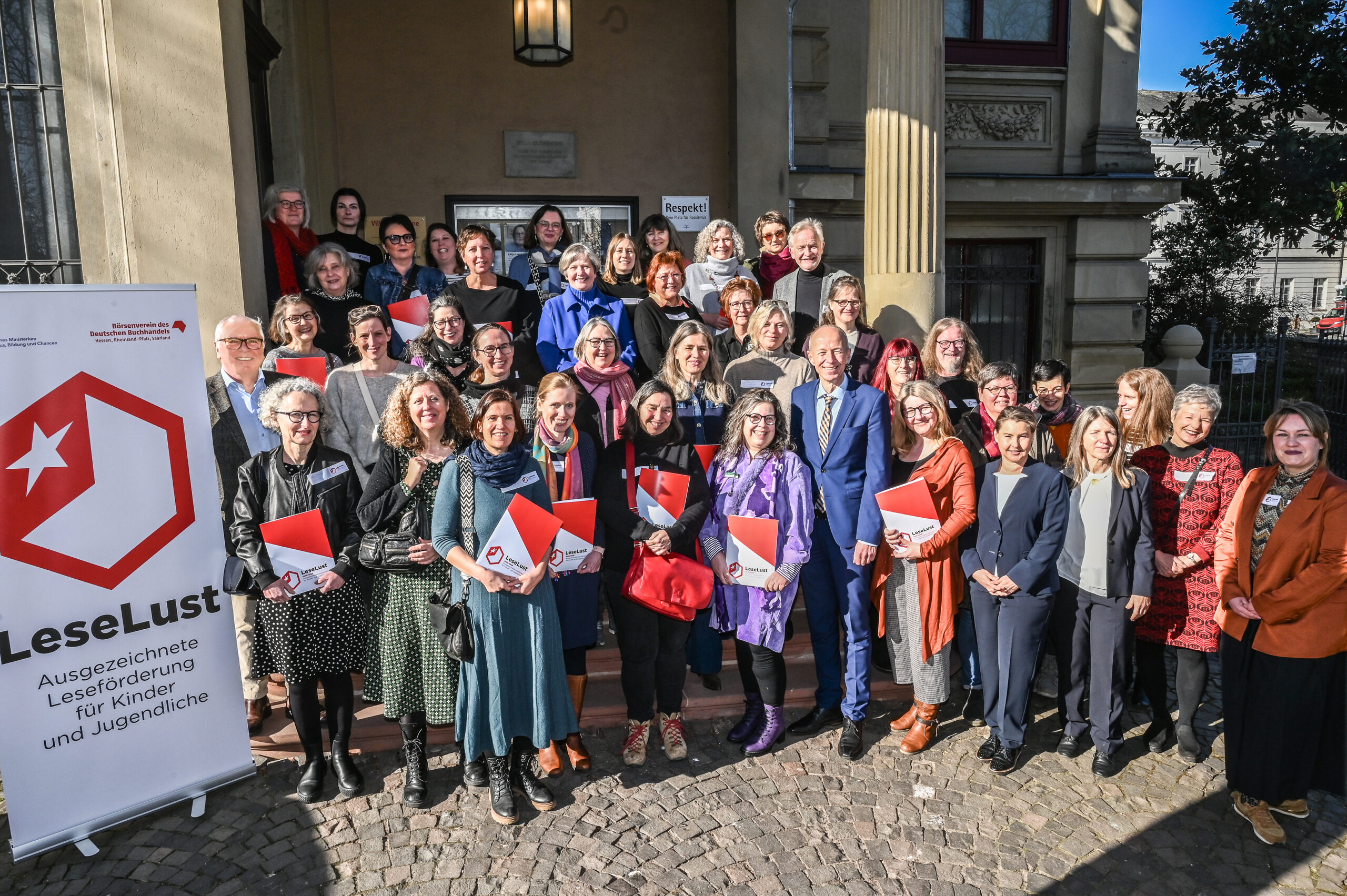 Lothar Wekel, Vorsitzender des Landesverbandes Hessen, Rheinland-Pfalz, Saarland ergänzt: „Wir sehen an den Zahlen zur Lesekompetenz in unserem Land, wie wichtig und dringlich die Leseförderung ist – und wie lebendig sie gestaltet sein sollte. Daher steht die Bezeichnung ‚LeseLust‘ auch für die Aufgabe, fantasievoll und innovativ Kinder und Jugendliche in die so vielfältige Welt des Lesens einzuführen, um die Teilhabe an gesellschaftlichen Prozessen, Demokratiebildung und Selbstbestimmtheit zu ermöglichen. Die hier ausgezeichneten Buchhandlungen verfolgen beeindruckend dieses Ziel und können dies jetzt auch öffentlich kundtun.“Die Auszeichnung wird seit 2008 im Turnus von zwei Jahren vom Ministerium für Bildung,