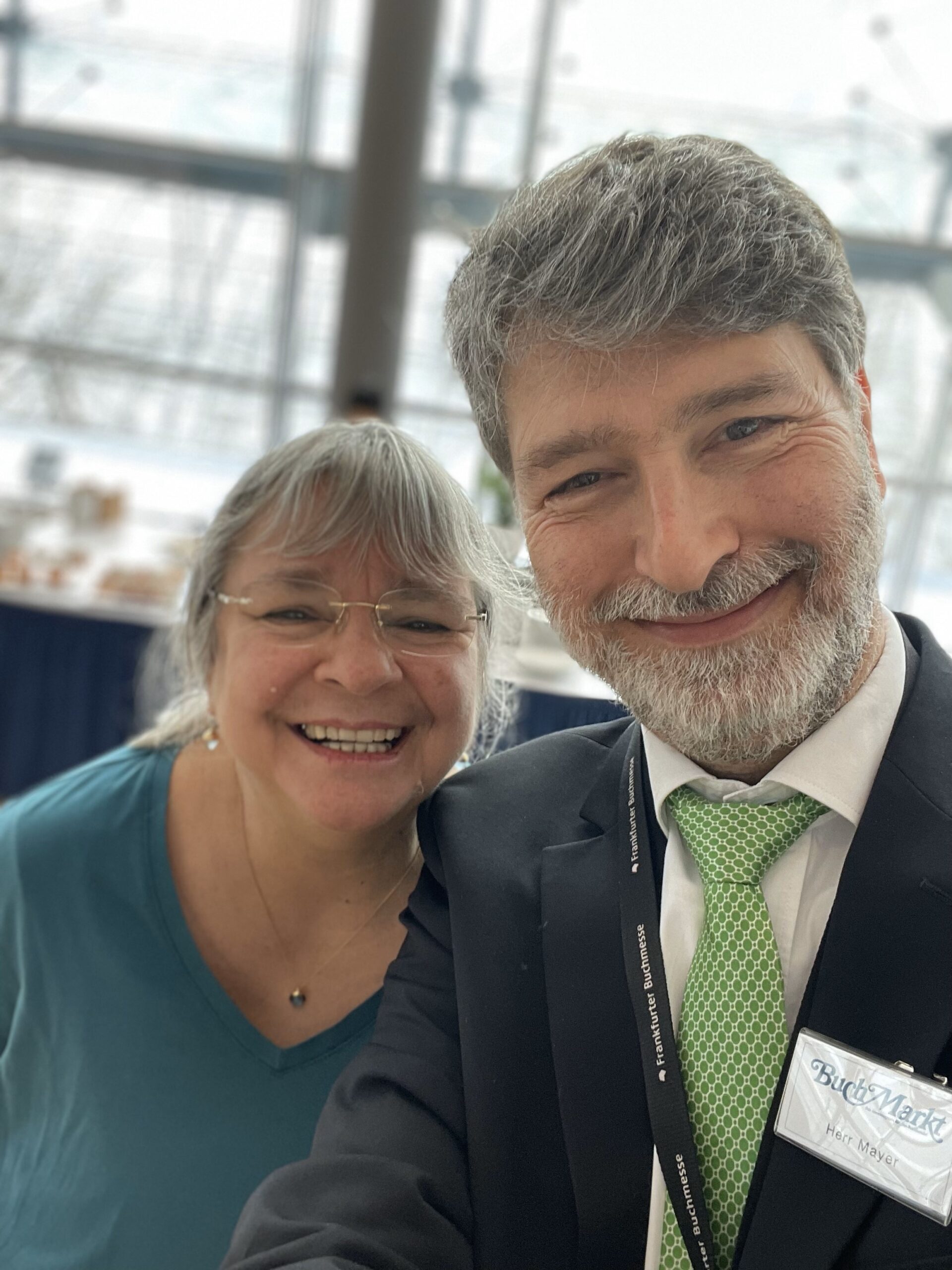 Journalistenkolleg*innen, die ich treffe, sind Markus Fertig, MVB, und die liebe Petra Samani von Langendorfs Dienst und vom Buchblinzler.