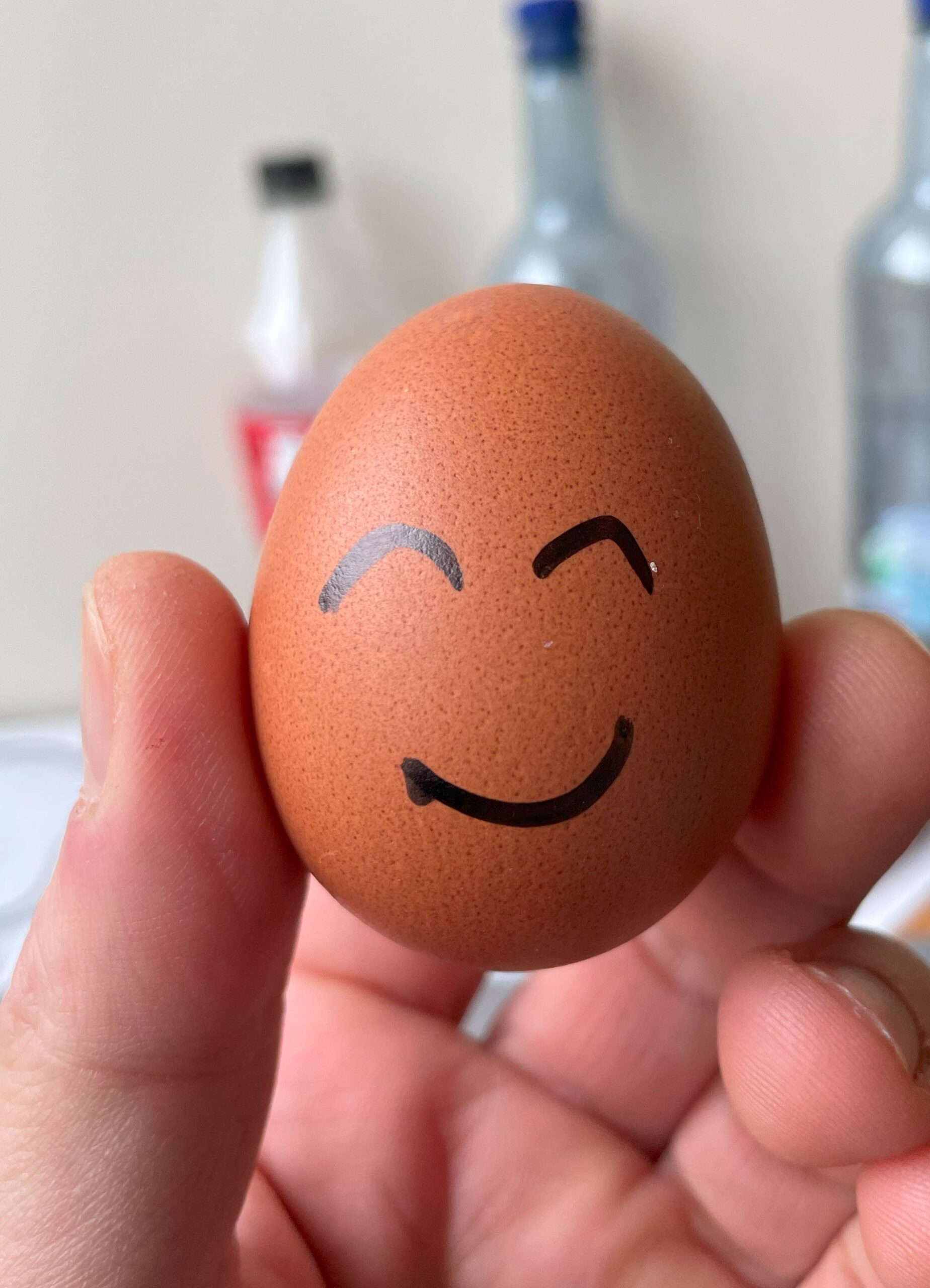 Und auch das muss man sich erst mal vor Augen führen: Jemand malt hier jeden Tag ein Lächeln auf jedes Frühstücksei.