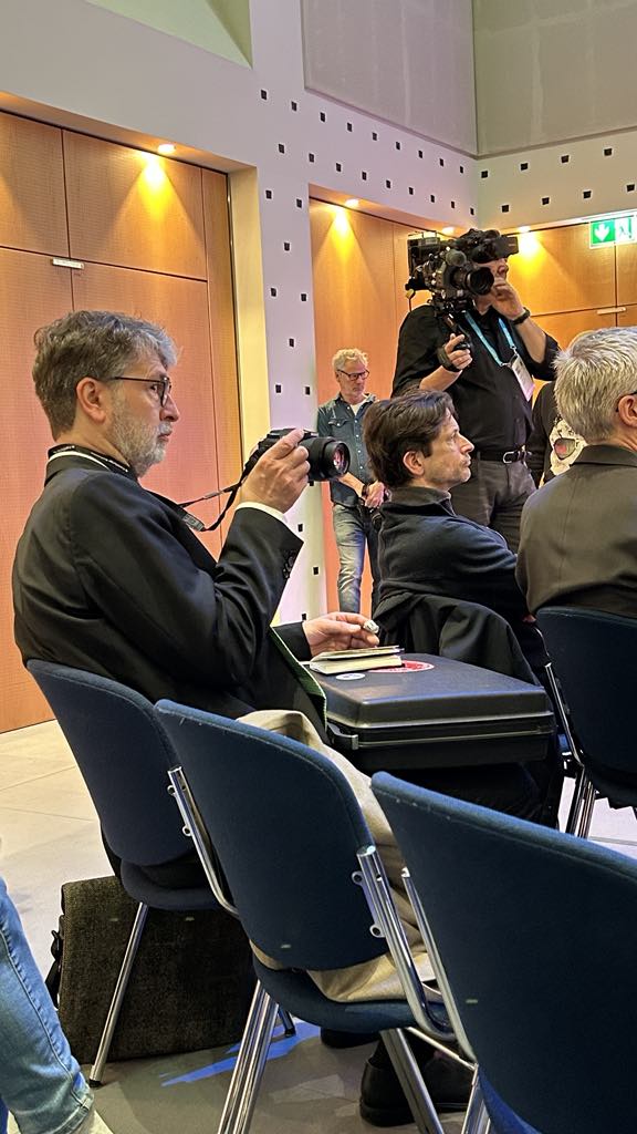 Der erste Teil der Pressekonferenz ist immer sehr angenehm, um nebenher seine Mails abzurufen oder Fotos zu schießen, während vorne die üblichen Stichworte durch meinen Filter rauschen: harte Zeiten, schöne Messe; Anforderung durch K.I.; Politik ist schwer; Lesen ist gut.