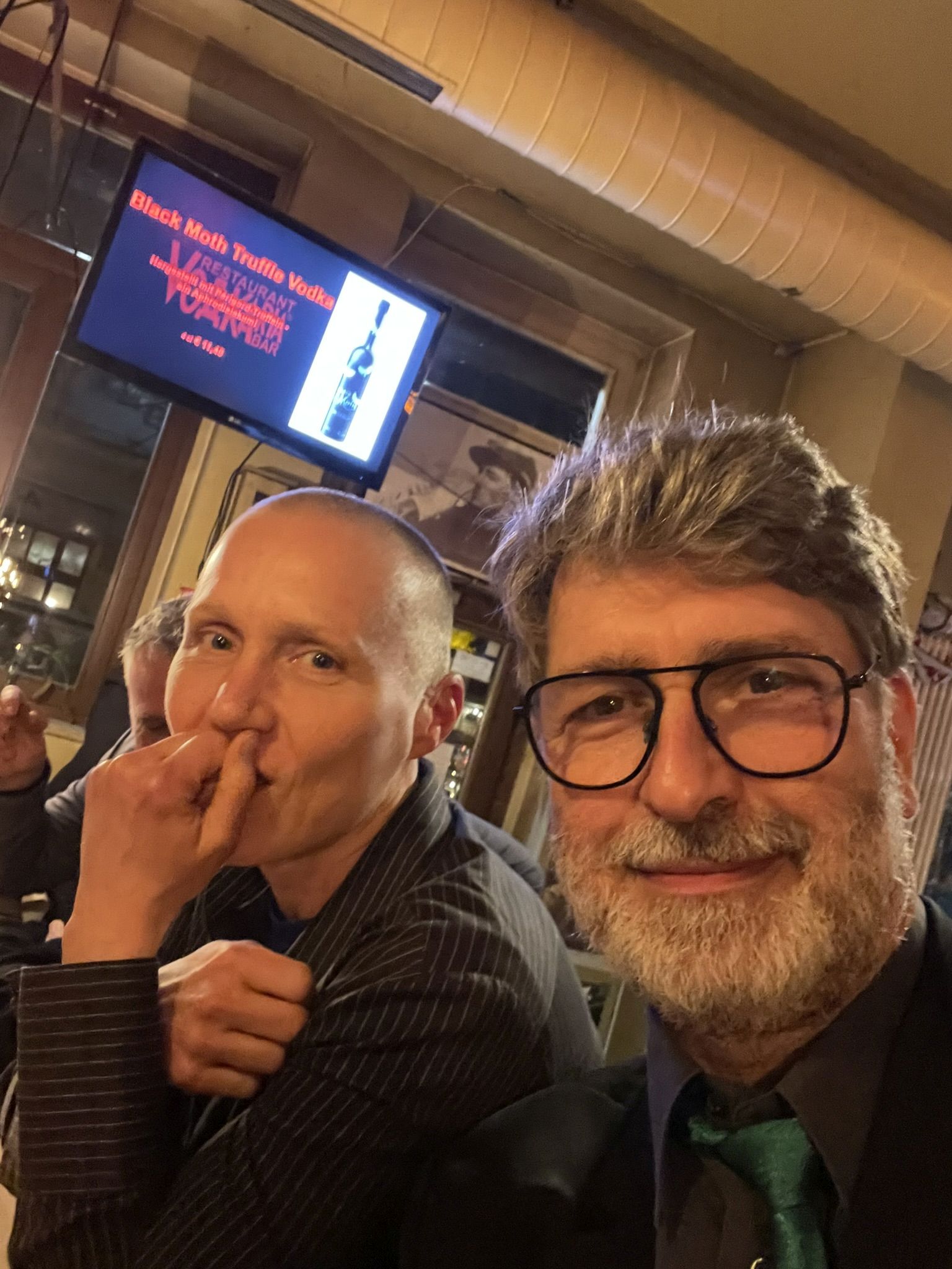 Von innen ist es ebenso muckelig. Die Vodkaria ist eine kleine Kultbar, die unter Promis geschätzt scheint, und heute Abend gehört sie der Buchbranche!