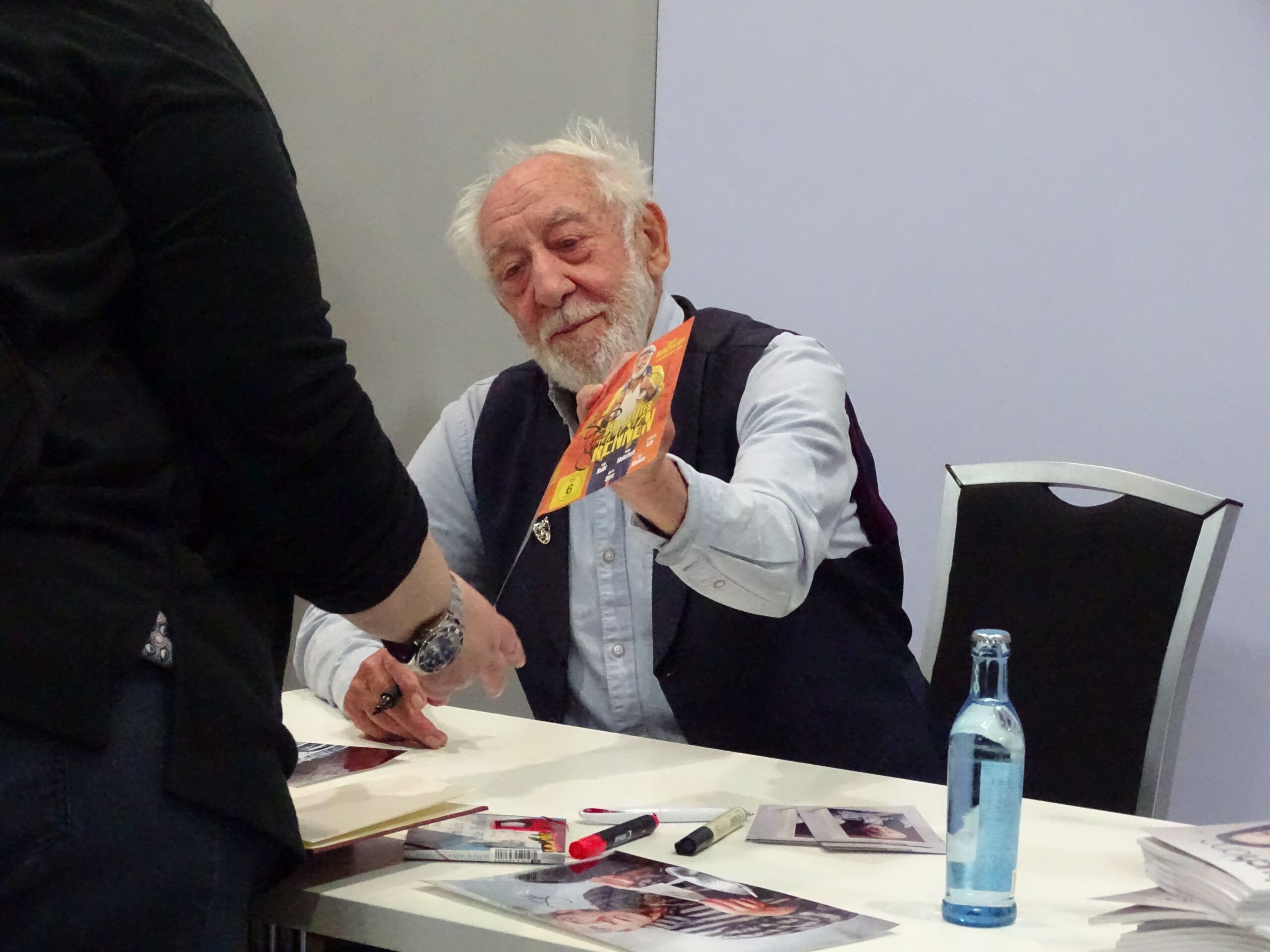 Leider kam ich nicht sehr nah an Herrn Hallervorden heran. Einmal nachher in der VIP Lounge, wo sich Journalisten aber diskret zu benehmen haben, und hier in der Gnade der Security, als der novum-Verlag die Signierstunde eröffnet und sich lange Schlangen bildeten.