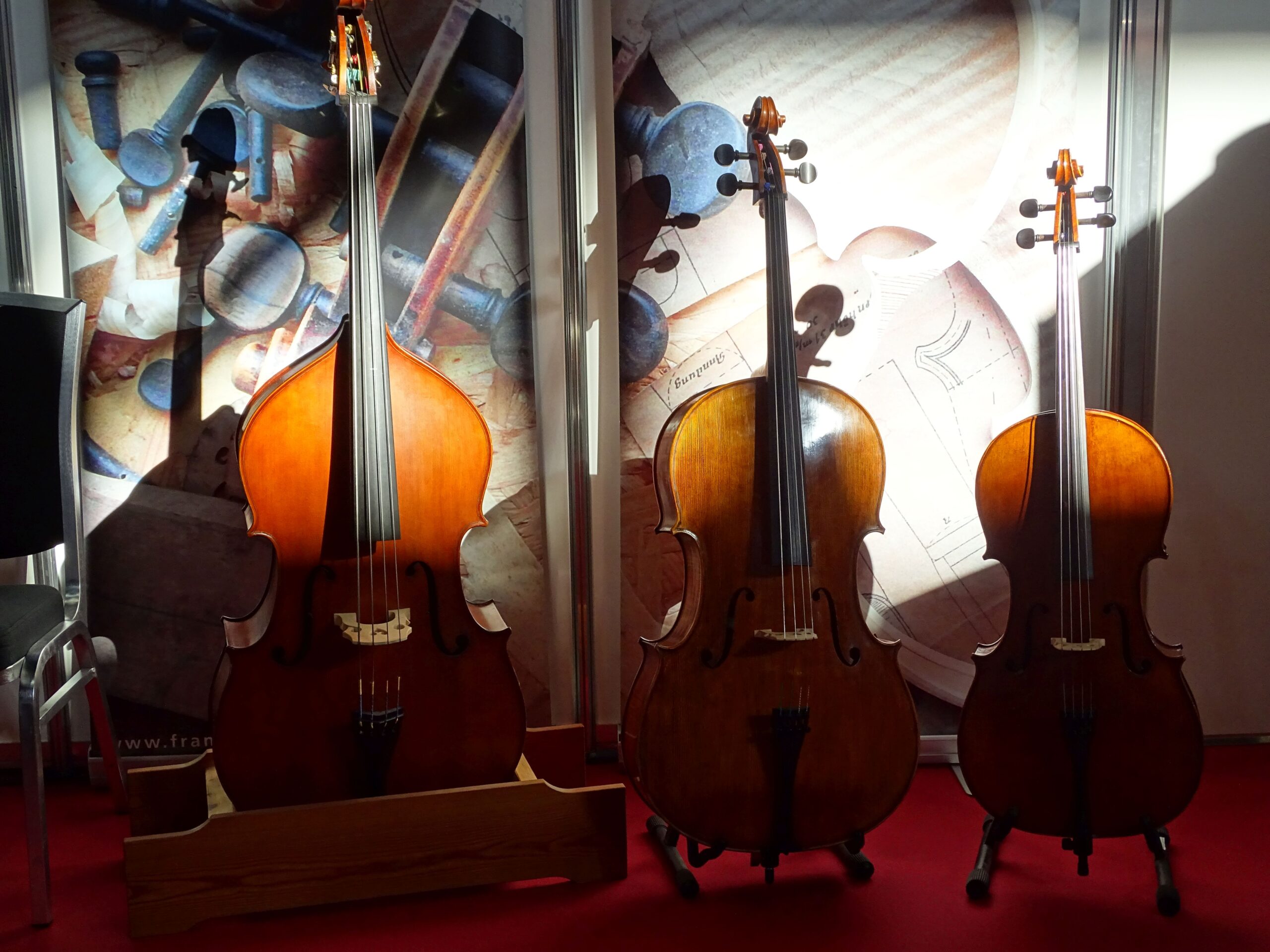 Und schauen Sie nur: als sich die Nachmittagssonne heute versöhnend durch die Lichtluken von Halle 2 neigt, genau dort, wo die Musikverlage sind, fällt eine ganz wunderbares Licht auf die Holzstreichinstrumente.