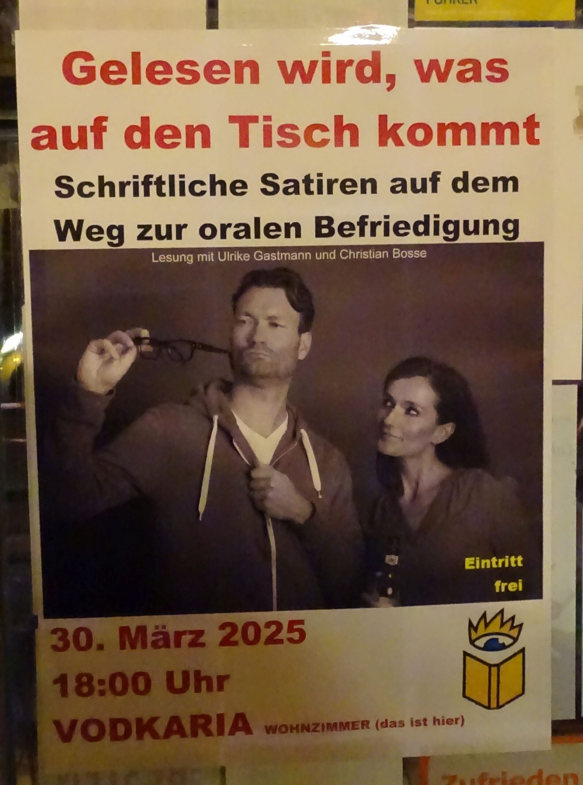 Aber ich konnte endlich einen Lapsus letzter Messe wieder ausbuchten, als ich versehentlich die Ahle Worscht verpasste, die Buchhändlerin Sonja Lehmann aus Nordhessen extra mitgebracht hat.