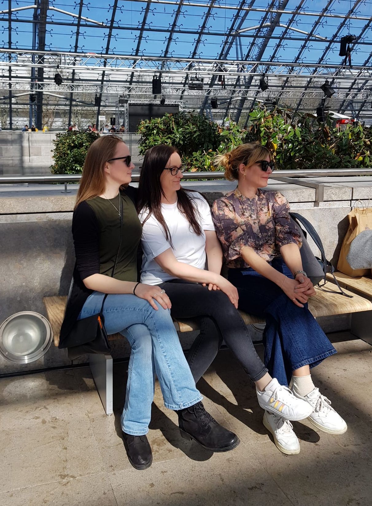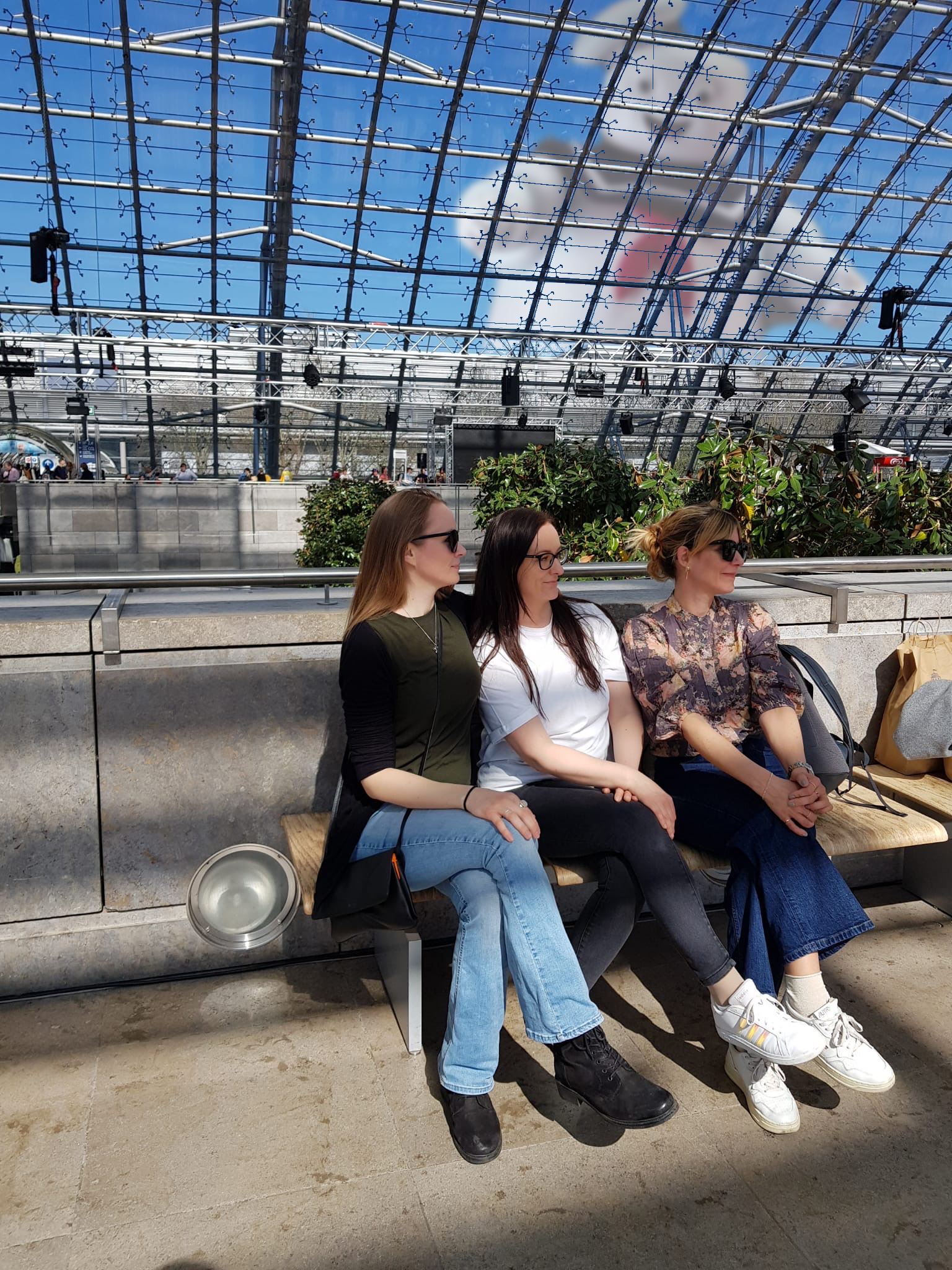 Quadratselfie: Maren Ongsiek und Luise Schitteck bilden mit mir zusammen eine Fluchtlinie zum gedachten Horizont…