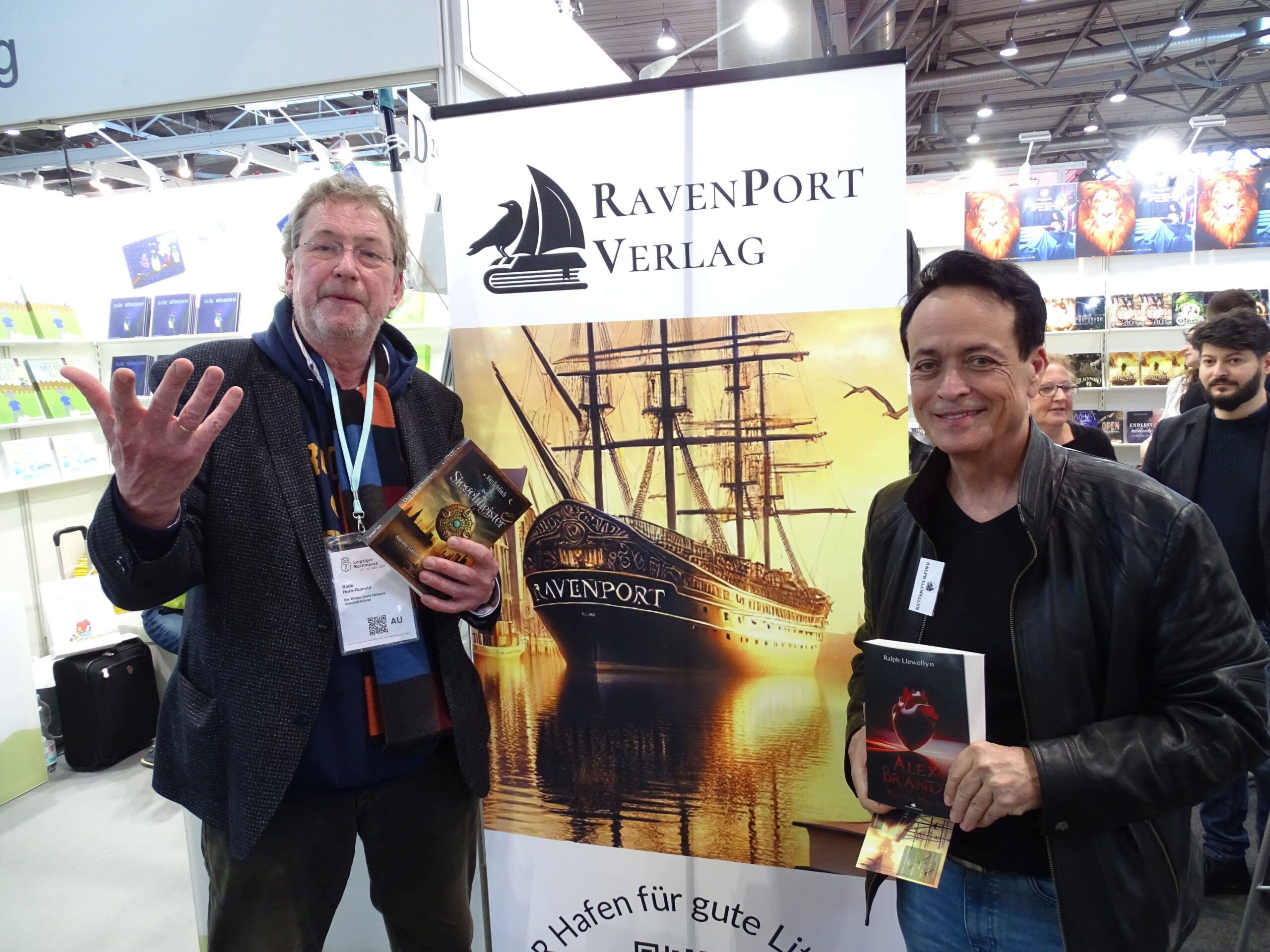 Am Stand von Ravenport finde ich auch Bücher von 360° vor – und jetzt, wo ich Bodo Horn dort einsortieren kann, ist ja klar, dass der Stand auch Platz hat für das Programm des alten Weggefährten. Harald Kiesel ist leider mit dem 360°-Verlag nicht auf der Messe, aber dafür ein paar seiner Autoren.