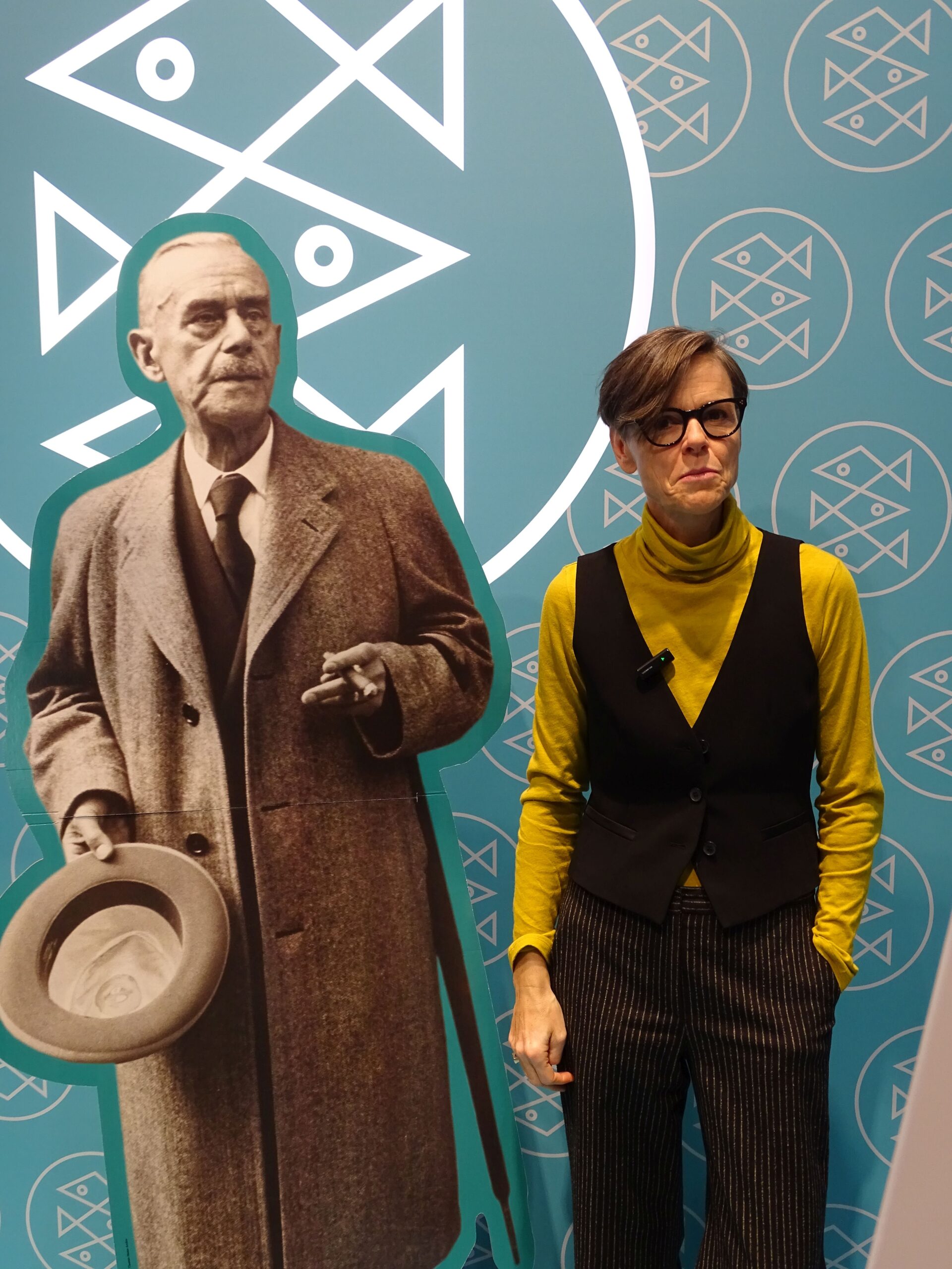 Dann plane ich ein Foto mit dem Thomas-Mann-Dummy. Und Anna Schneider ist mehr als bereit.