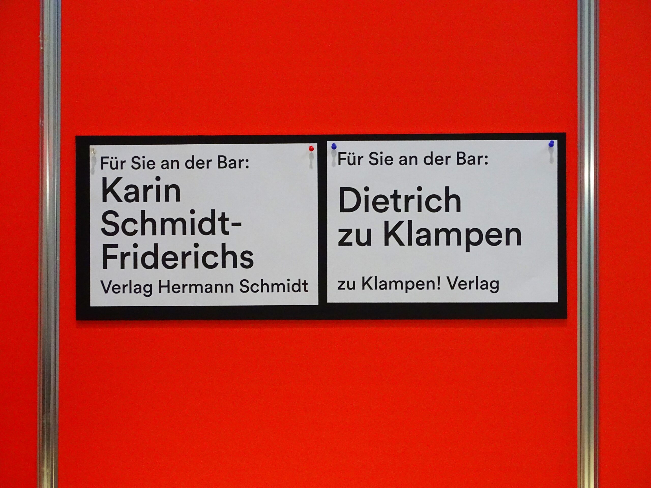 Seit 2015 lädt die Kurt-Wolff-Stiftung immer freitags, gegen Messeende zu einem ungezwungenen Empfang ein. Dienst an der Theke hat traditionell immer der Börsenvereinsvorstand.