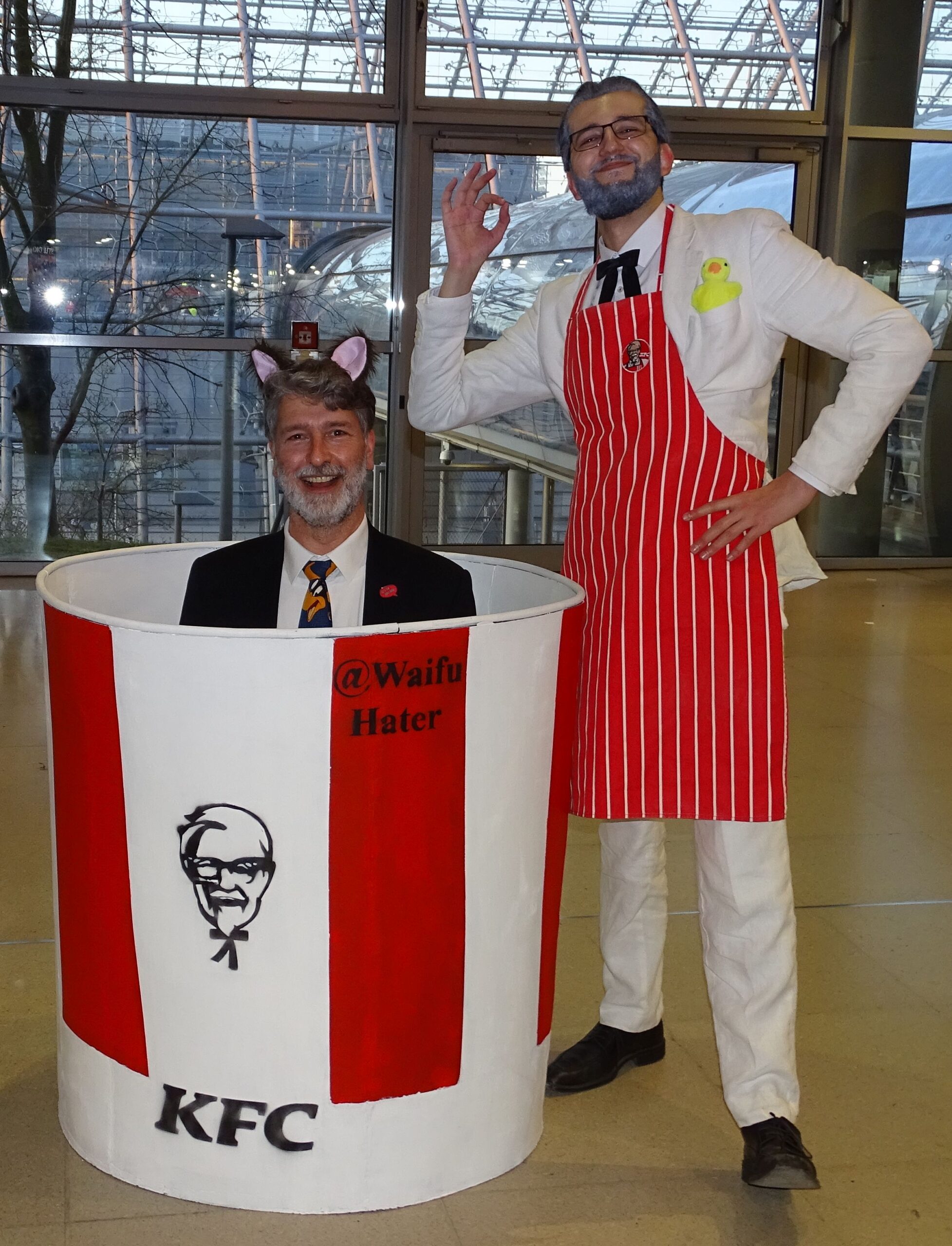Auf dem Rausweg treffe ich noch das lustigste Cosplay des Tages: Es ist Colonel Sanders!