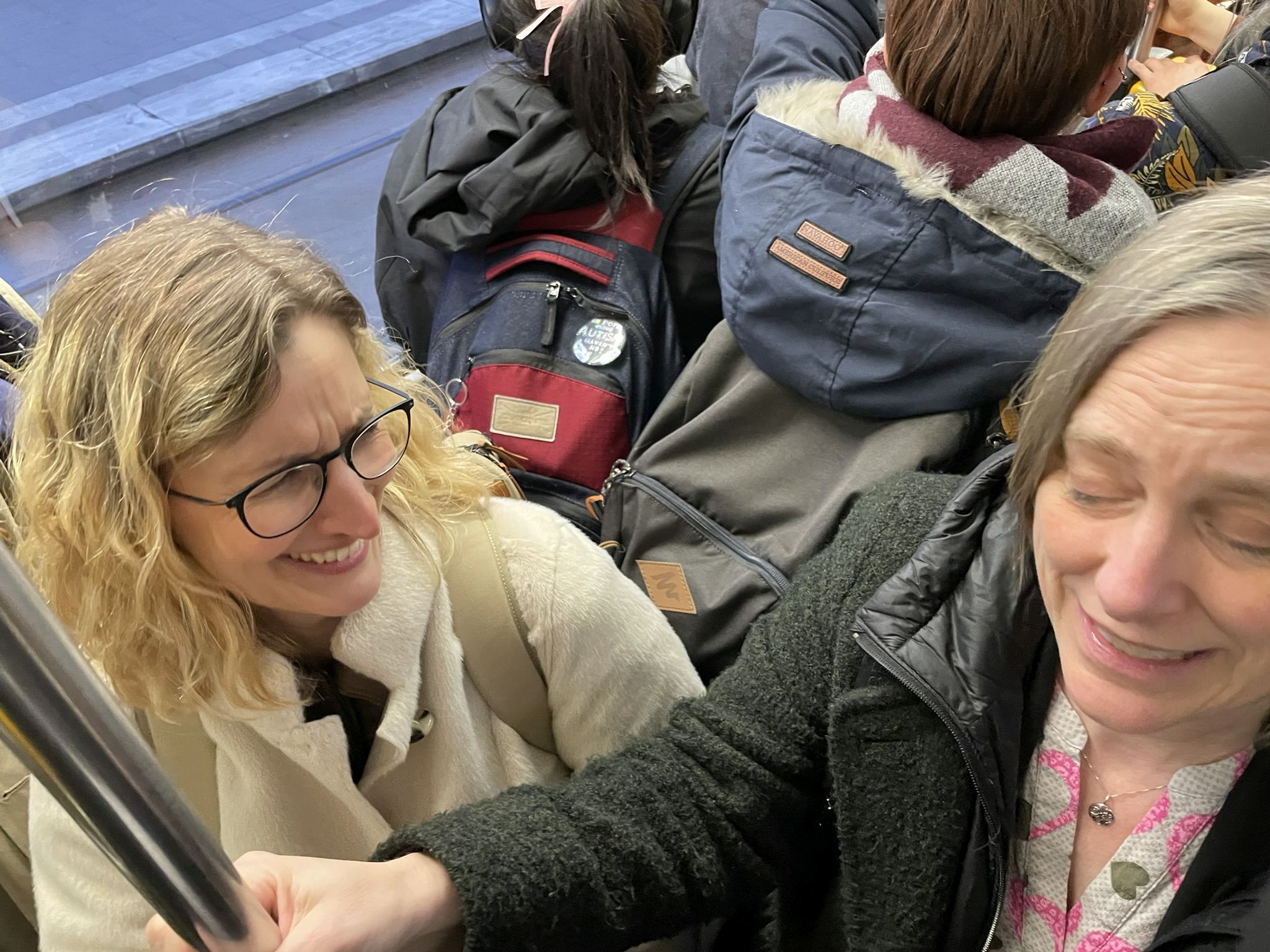 Auf dem Weg zum Hauptbahnhof lernen Frau Ongsiek und ich noch Dr. Sarah Koch von Springer Nature in der zusammengequetschten Straßenbahn kennen.