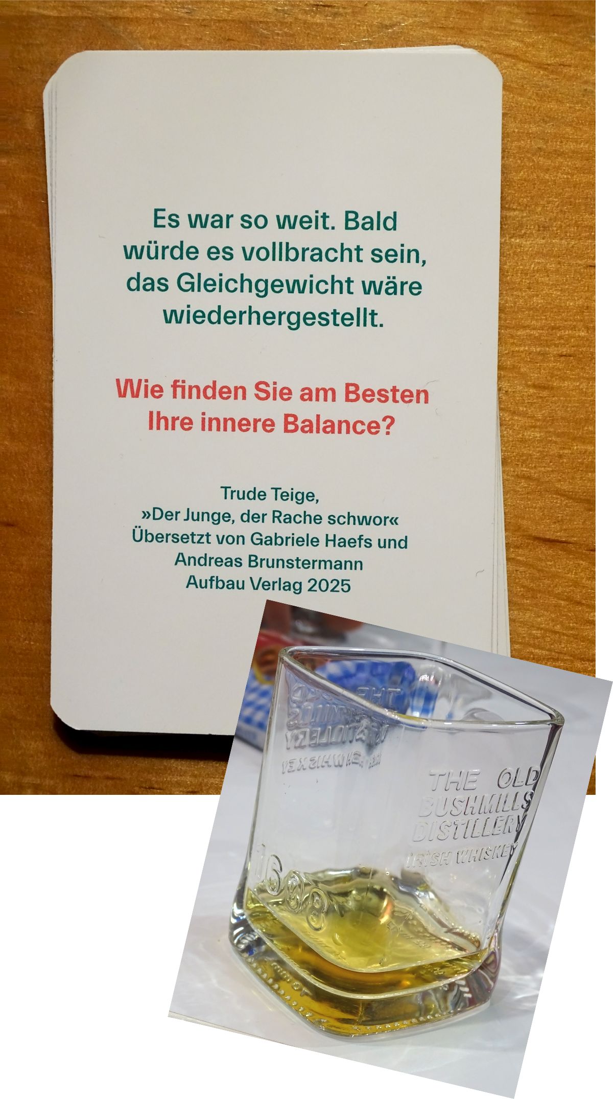 Nennen wir es einen Tag, sagt der Engländer, wenn er fertig hat. Let’s call it a Day. Meine Whiskyrunde ist ähnlichen Gesetzen unterworfen wie der Buchhandelstreff: Ich bin der Admin, und wir machen das immer gegen Freitagabend.
