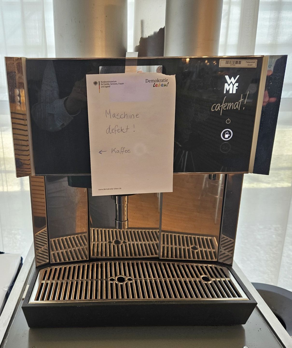 Am zweiten Tag schon die Kaffeemaschine kaputtkriegen?