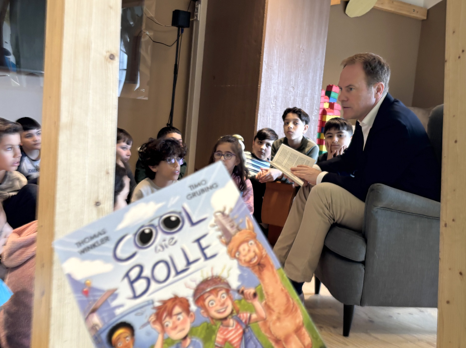 So war Düsseldorfs Oberbürgermeister Dr. Stephan Keller etwa gestern zu Hast in der Zentralbibliothek Düsseldorf, um aus dem diesjährigen Welttags-Buch Cool wie Bolle von Thomas Winkler mit Illustrationen von Timo Grubing vorzulesen. Zu Beginn des Tages hatte Verlegerin Sarah Scherber vom Gedankenkunst Verlag gezeigt, wie überhaupt aus einer Idee ein fertiges Buch entsteht. Worauf Buchhändlerin Aspasia Ouliou von der Buchhandlung Bibliomagia ergänzte, wo man die neuen Bücher dann kaufen kann und welche Rolle eine Buchhandlung dabei spielt. Michaela Hutzheimer, Sachgebietsleiterin Kinder- und Jugendbibliothek der Zentralbibliothek, fügte die Bedeutung der Bibliotheken für das Lesen bei. Außerdem erfuhren die Kinder noch von der Buchbinderin Natascha Jung, wie Bücher hergestellt werden, und zu guter Letzt konnten alle in der Schreibwerkstatt mit Kinder- und Jugendbuchautorin Aygen-Sibel Çelik kreativ werden und selbst ein kleines Büchlein mit ihren Ideen und Geschichten füllen.